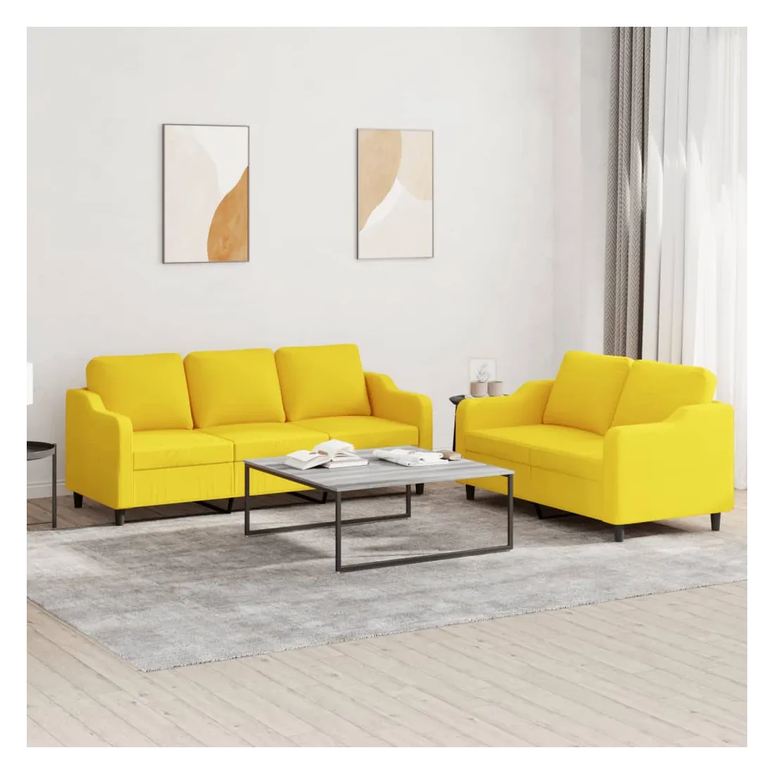 Ensemble de canapés 2 pcs avec coussins Jaune clair Tissu