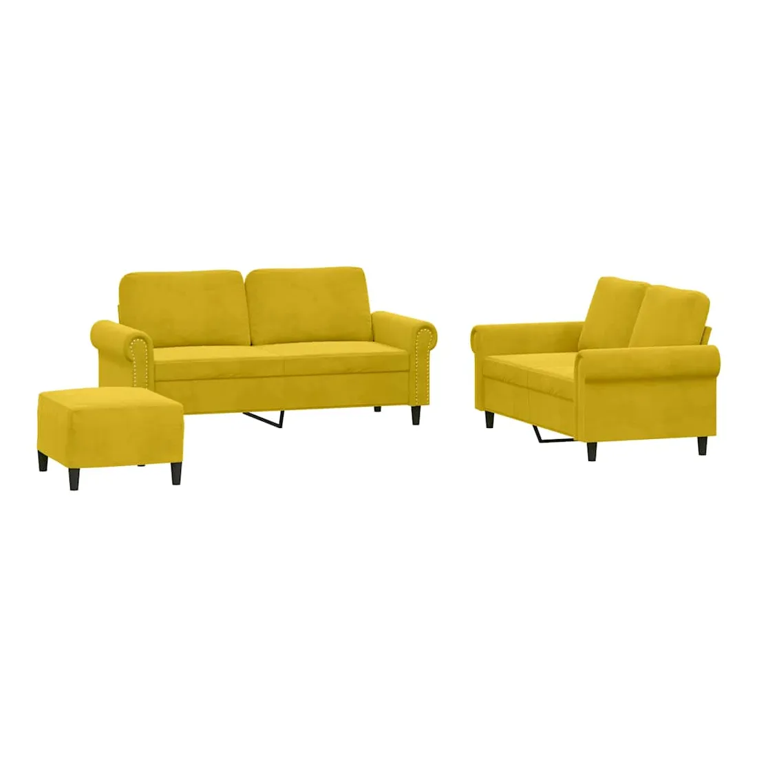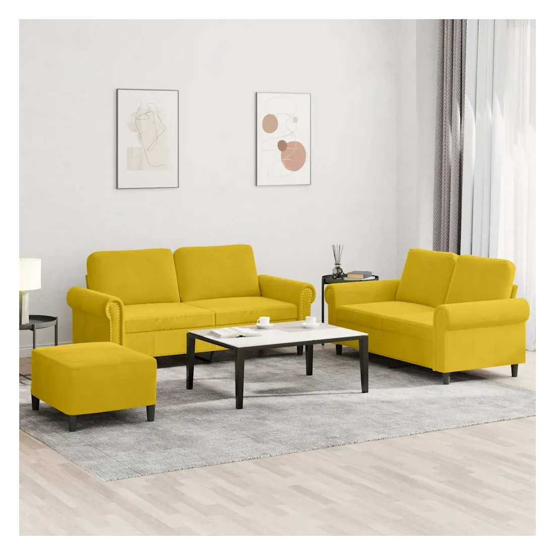 Cet ensemble de canapés est un excellent endroit pour discuter, lire, regarder la télévision ou simplement vous détendre. Il est destiné à être un point central de votre maison. Velours doux : le velours est un tissu doux et confortable, agréable au toucher.Structure robuste et stable : la structure en contreplaqué et en métal du canapé assure robustesse et stabilité.Expérience d'assise confortable : le canapé est très confortable avec le siège, les accoudoirs et les oreillers de dossier bien rembourrés.Pouf polyvalent : ce repose-pied convient pour reposer vos pieds lorsque vous êtes allongé dans un canapé, ou pour vous offrir un siège supplémentaire dans votre pièce. De plus, le design simple et la taille compacte le rendent idéal pour presque tous vos espaces de vie.