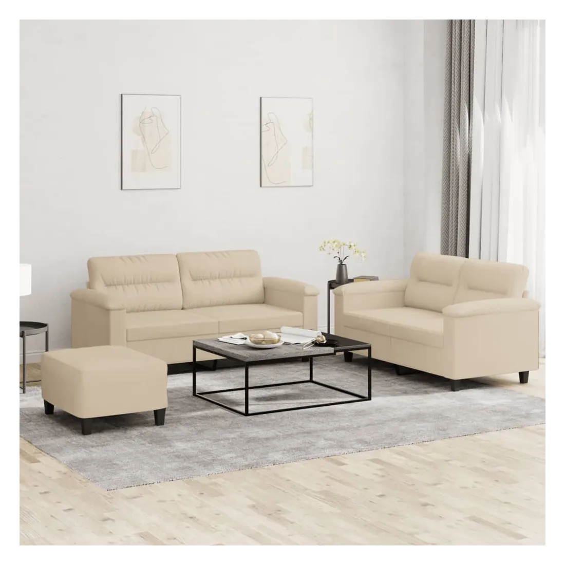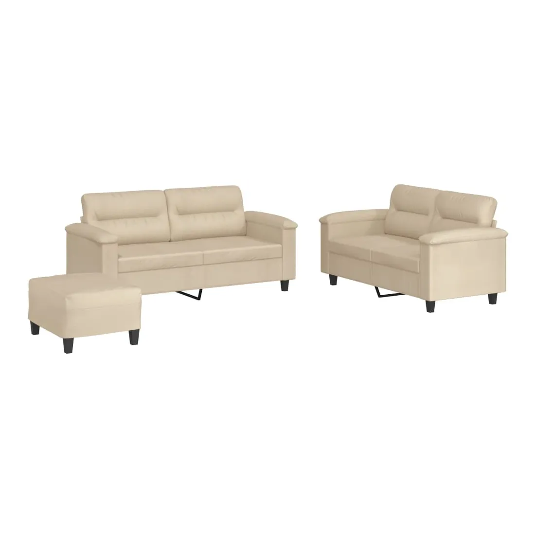 Ensemble de canapés 3 pcs avec coussins crème tissu microfibre
