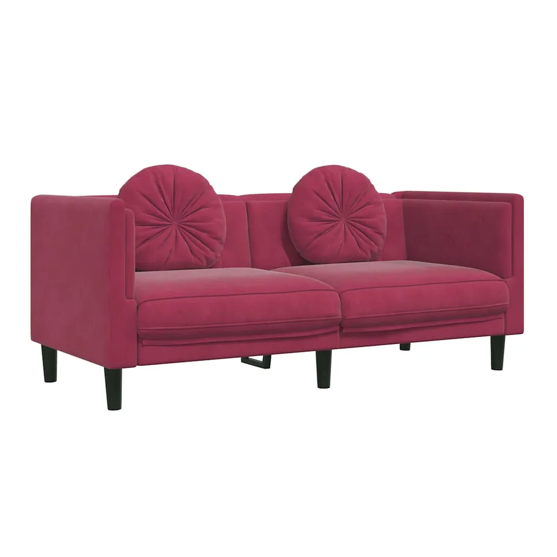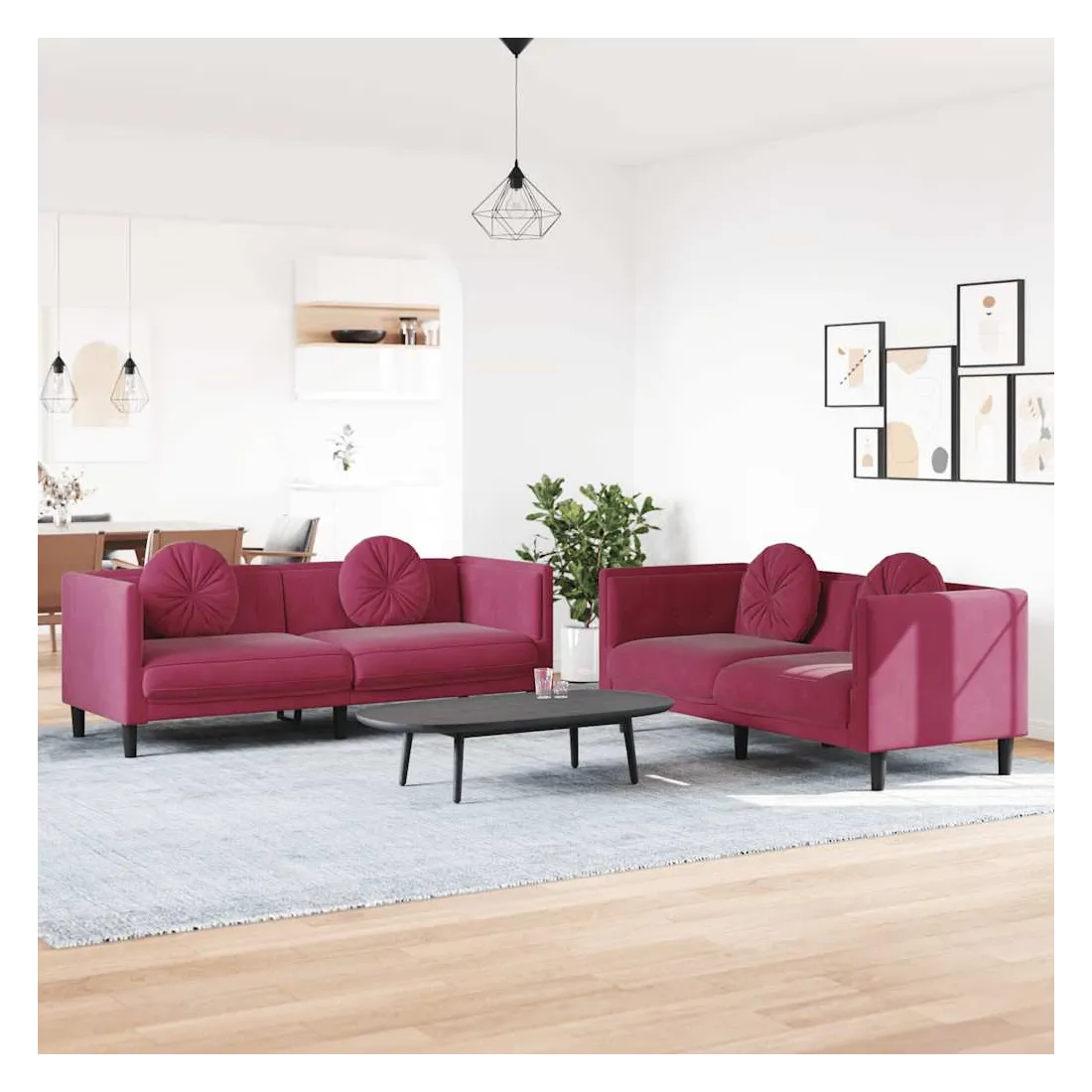 Cet ensemble de canapés est un excellent endroit pour discuter, lire, regarder la télévision ou simplement vous détendre. Il est destiné à être un point central de votre maison. Velours doux : le velours est un tissu doux et confortable, agréable au toucher.Expérience d'assise confortable : le canapé est très confortable grâce au siège et aux accoudoirs épais et rembourrés.Oreillers ronds pratiques : ces oreillers décoratifs ronds non seulement embellissent votre décor mais ils peuvent également apporter un confort supplémentaire lorsque vous êtes assis ou allongé.Pieds de soutien : le canapé rembourré est soutenu par des pieds robustes, qui assurent sa stabilité, sa sécurité et sa fermeté.Design accrocheur : doté d'un design simple mais moderne, ce siège de salon est destiné à attirer l'attention dans votre pièce.
