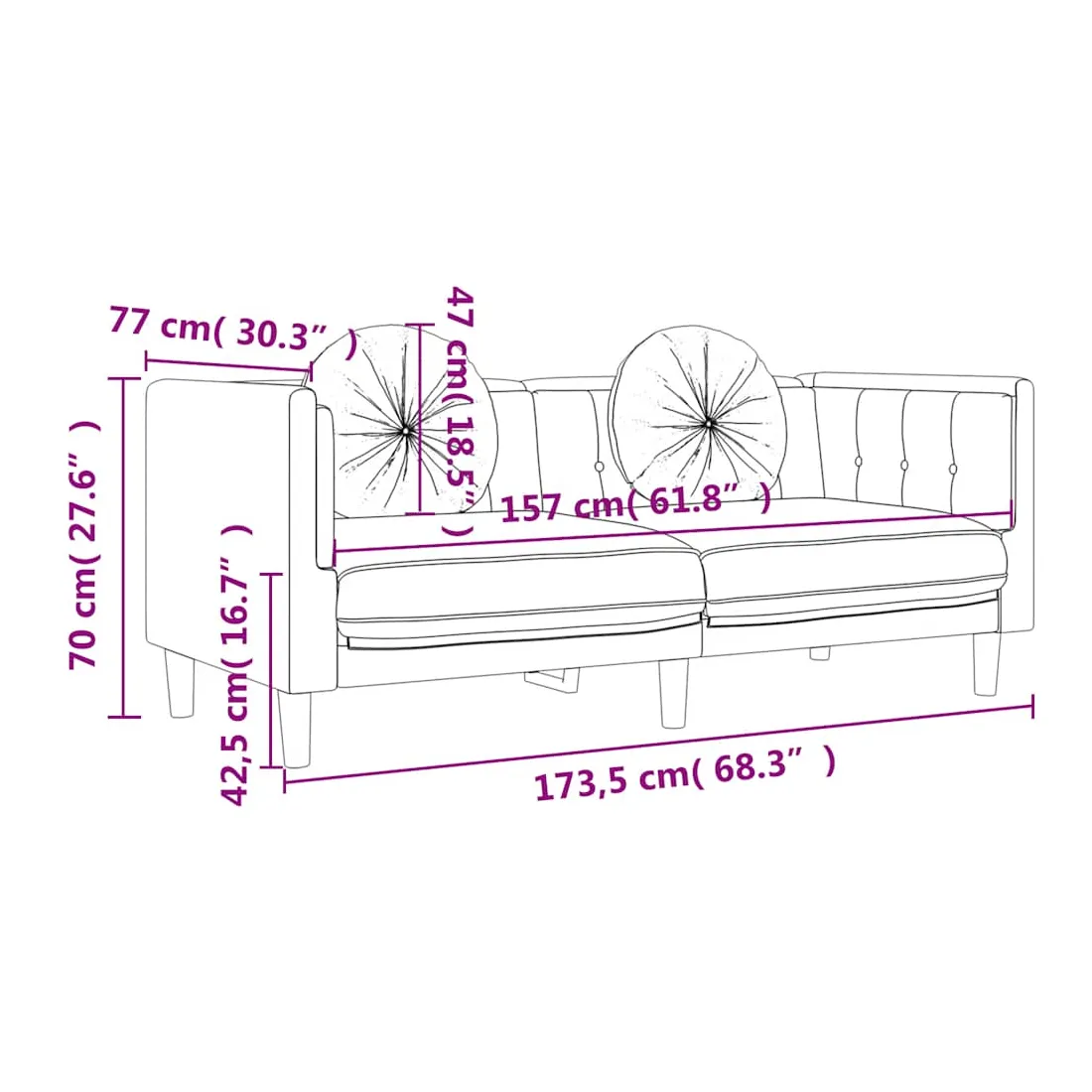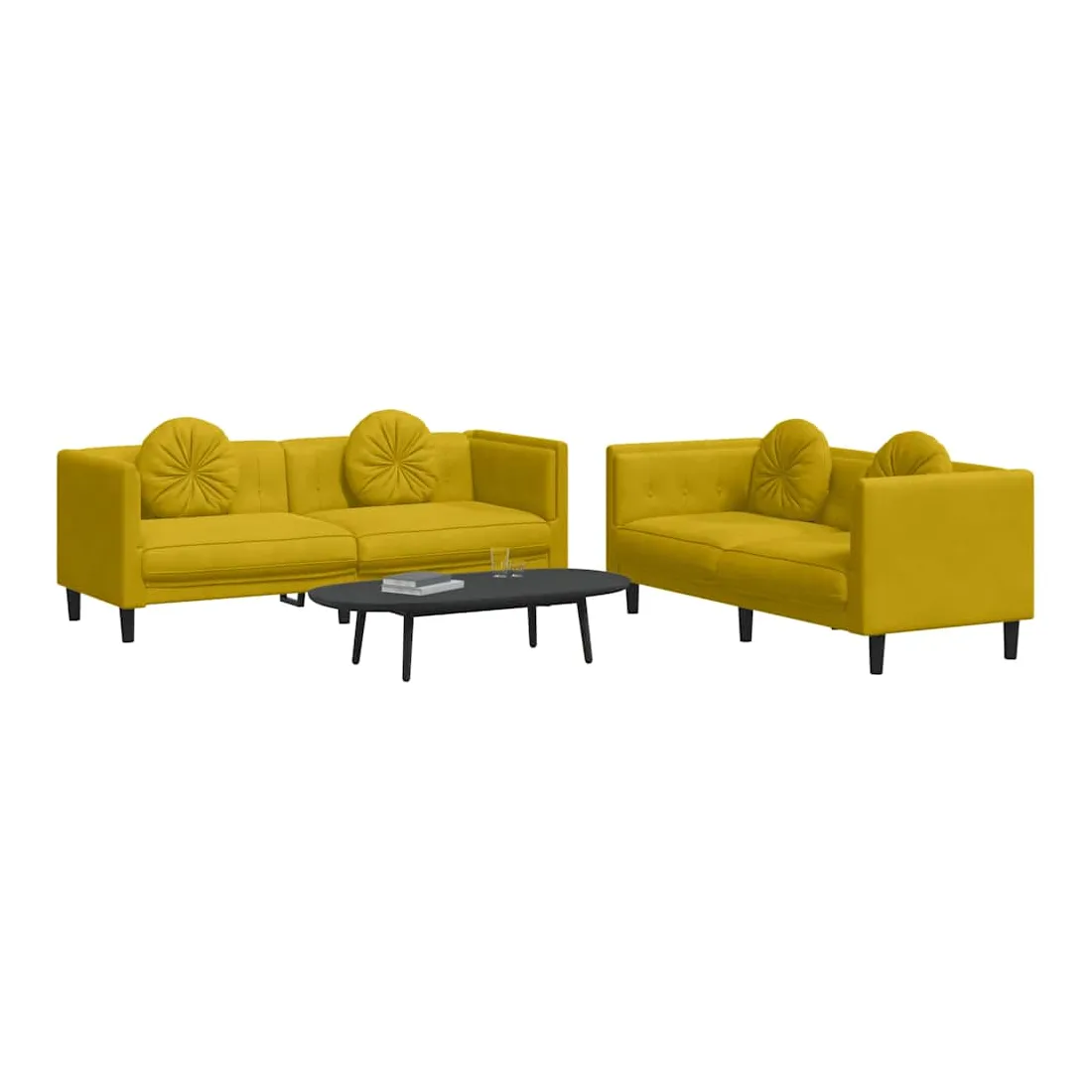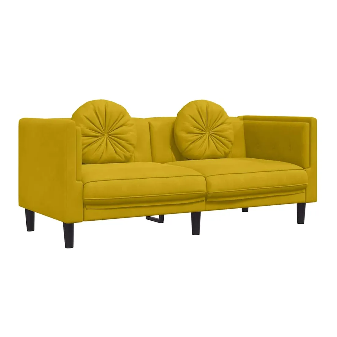 Cet ensemble de canapés est un excellent endroit pour discuter, lire, regarder la télévision ou simplement vous détendre. Il est destiné à être un point central de votre maison. Velours doux : le velours est un tissu doux et confortable, agréable au toucher.Expérience d'assise confortable : le canapé est très confortable grâce au siège et aux accoudoirs épais et rembourrés.Oreillers ronds pratiques : ces oreillers décoratifs ronds non seulement embellissent votre décor mais ils peuvent également apporter un confort supplémentaire lorsque vous êtes assis ou allongé.Pieds de soutien : le canapé rembourré est soutenu par des pieds robustes, qui assurent sa stabilité, sa sécurité et sa fermeté.Design accrocheur : doté d'un design simple mais moderne, ce siège de salon est destiné à attirer l'attention dans votre pièce.