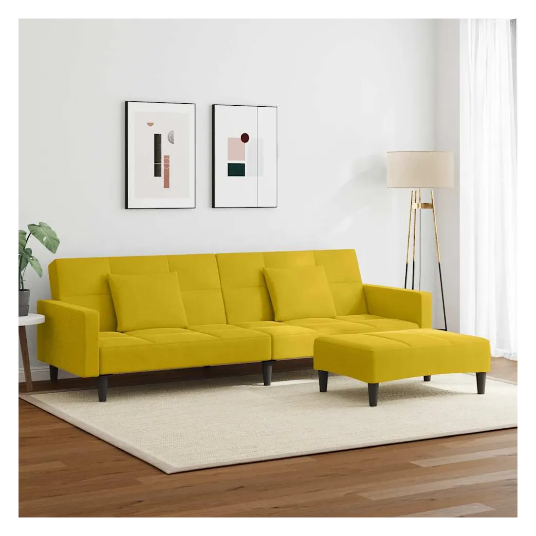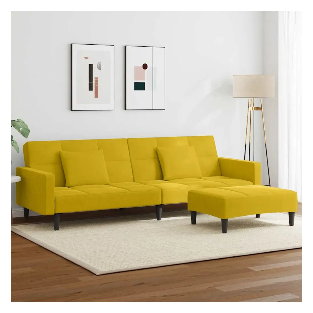 Ce canapé-lit avec repose-pied est une solution parfaite pour accueillir des invités pour la nuit tout en offrant un espace confortable pour s'asseoir pendant la journée. Fonction 2 en 1 : ce canapé-lit se transforme rapidement et facilement d'un canapé en un lit et à nouveau en canapé. Vous pouvez pousser les deux dossiers séparés partiellement ou complètement vers le bas pour créer un endroit idéal pour une sieste ou un lit double.Expérience d’assise confortable : ce canapé-lit est recouvert d’un velours doux et confortable. Le tissu en velours présente une surface douce et lisse qui offre une sensation agréable contre la peau, vous apportant chaleur et confort ultime.Cadre robuste et stable : le cadre en bois du canapé-lit assure robustesse et stabilité.Polyvalence : ce lit d'appoint avec repose-pied est idéal pour divers espaces comme les salons, les cinémas maison, les sous-sols, les petites pièces, les dortoirs, les appartements, les studios et les bureaux. Il offre une expérience de divertissement familial heureuse et améliore également la décoration de votre chambre.