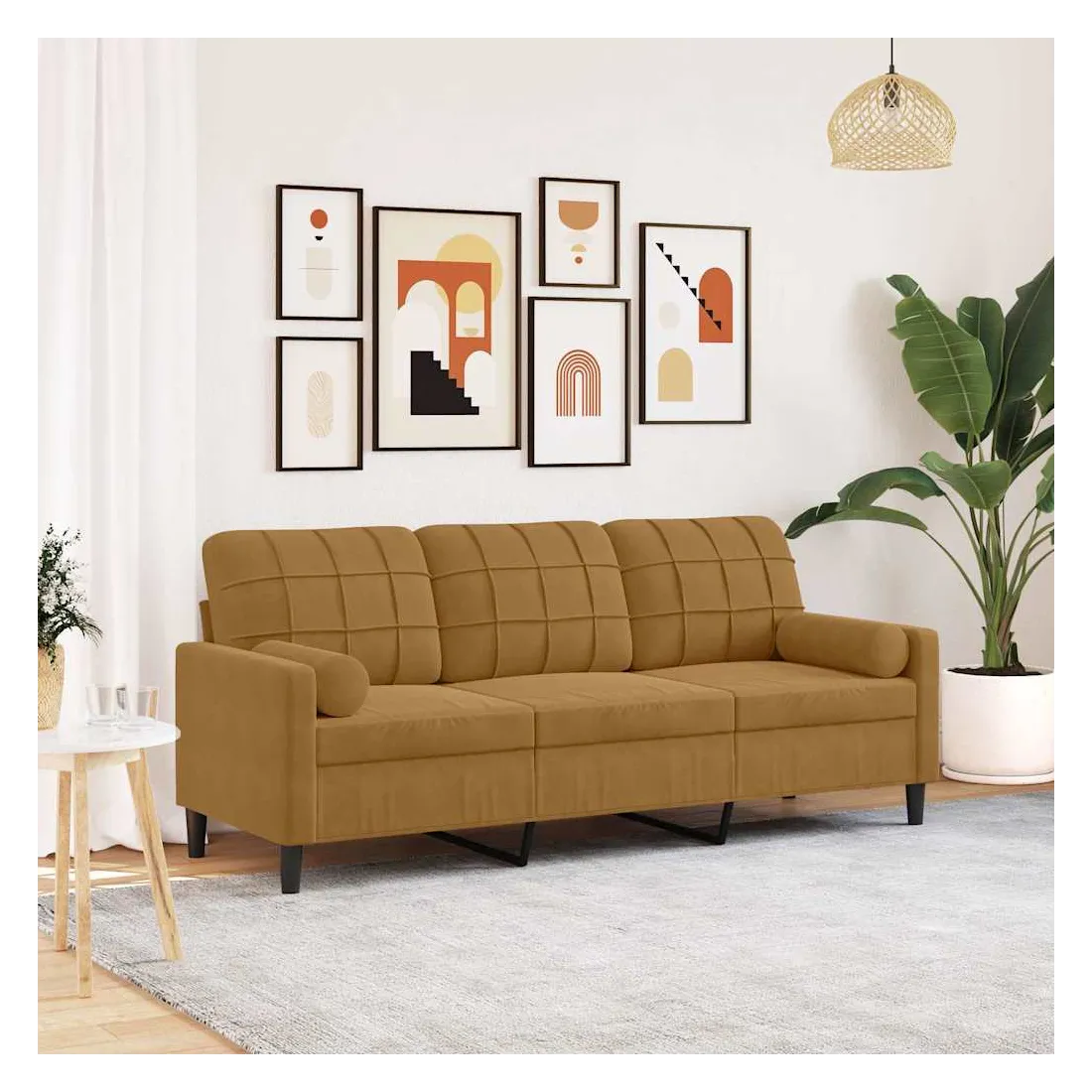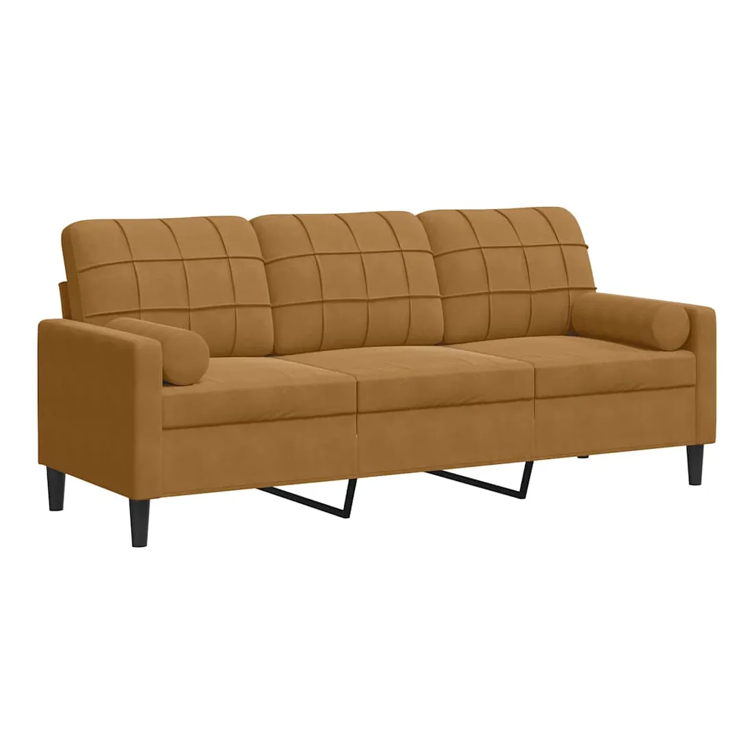 Ce canapé à 3 places est un excellent endroit pour discuter, lire, regarder la télévision ou simplement vous détendre. Il est destiné à être un point central dans votre maison. Matériau doux et confortable : le tissu en velours présente une surface douce et lisse qui offre une sensation agréable contre la peau, vous apportant chaleur et confort ultime.Cadre robuste et stable : le cadre en métal du canapé de salon assure robustesse et stabilité.Expérience d'assise confortable : le canapé est très confortable avec les sièges, les accoudoirs et les oreillers de dossier bien rembourrés.Housses d'oreillers amovibles : grâce à la fermeture éclair, les housses de ces oreillers de traversin sont faciles à retirer et à nettoyer en cas de besoin.Design accrocheur : doté d'un design simple mais moderne, ce canapé est destiné à attirer l'attention dans votre chambre.