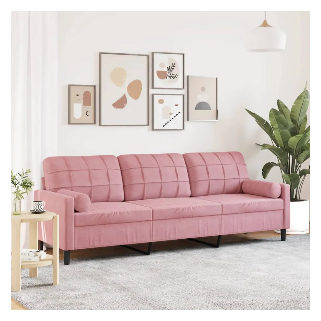 Ce canapé à 3 places est un excellent endroit pour discuter, lire, regarder la télévision ou simplement vous détendre. Il est destiné à être un point central dans votre maison. Matériau doux et confortable : le tissu en velours présente une surface douce et lisse qui offre une sensation agréable contre la peau, vous apportant chaleur et confort ultime.Cadre robuste et stable : le cadre en métal du canapé de salon assure robustesse et stabilité.Expérience d'assise confortable : le canapé est très confortable avec les sièges, les accoudoirs et les oreillers de dossier bien rembourrés.Housses d'oreillers amovibles : grâce à la fermeture éclair, les housses de ces oreillers de traversin sont faciles à retirer et à nettoyer en cas de besoin.Design accrocheur : doté d'un design simple mais moderne, ce canapé est destiné à attirer l'attention dans votre chambre.