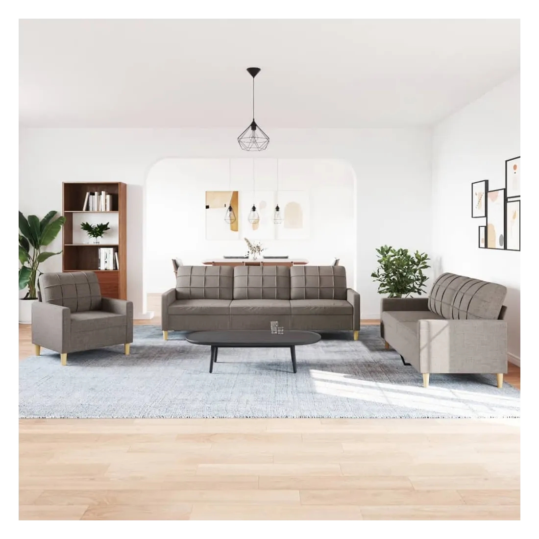 Cet ensemble de canapés est un excellent endroit pour discuter, lire, regarder la télévision ou simplement vous détendre. Il est destiné à être un point central de votre maison. Matériau doux et durable : le tissu en polyester offre une combinaison de douceur, de respirabilité et de durabilité, vous garantissant un confort et une convivialité ultimes. Cadre robuste et stable : le cadre en métal du canapé en tissu assure robustesse et stabilité. Expérience d'assise confortable : le canapé est très confortable avec les sièges, les accoudoirs et les oreillers de dossier bien rembourrés.