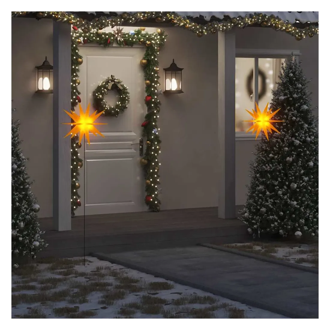 Créez une ambiance festive autour de votre maison pendant Noël avec cette lumières de Noël ! Fonction de minuterie : l'ornement à LED est doté d'un bouton de minuterie sur la télécommande qui vous permet de contrôler la minuterie de la lumière. La décoration lumineuse de Noël sera allumée 6 heures et éteinte 18 heures par jour, vous n'avez donc pas à vous inquiéter de gaspiller de l'énergie.Étanchéité IP44 : le présentoir de Noël a un indice d'étanchéité IP44 et peut être utilisé aussi bien à l'intérieur qu'à l'extérieur, ce qui en fait une décoration de Noël parfaite.Facile à utiliser et à ranger : il suffit d'insérer l'étoile de Noël dans le sol à l'aide du piquet de terre inclus. De plus, la lumière de Noël à LED est pliable pour faciliter son rangement lorsqu'elle n'est pas utilisée.Matériau durable : fabriquée en PP résistant aux intempéries, la décoration de Noël est légère, solide et résistante aux chocs.Décoration fantastique : l'ampoule à la lueur chaleureuse brille magnifiquement dans la nuit, ce qui vous transportera dans un monde de conte de fées et créera une ambiance de Noël douillette et chaleureuse dans votre maison ! Bon à savoir :Veuillez vous assurer que l'adaptateur est branché à l'intérieur dans un environnement sec.
