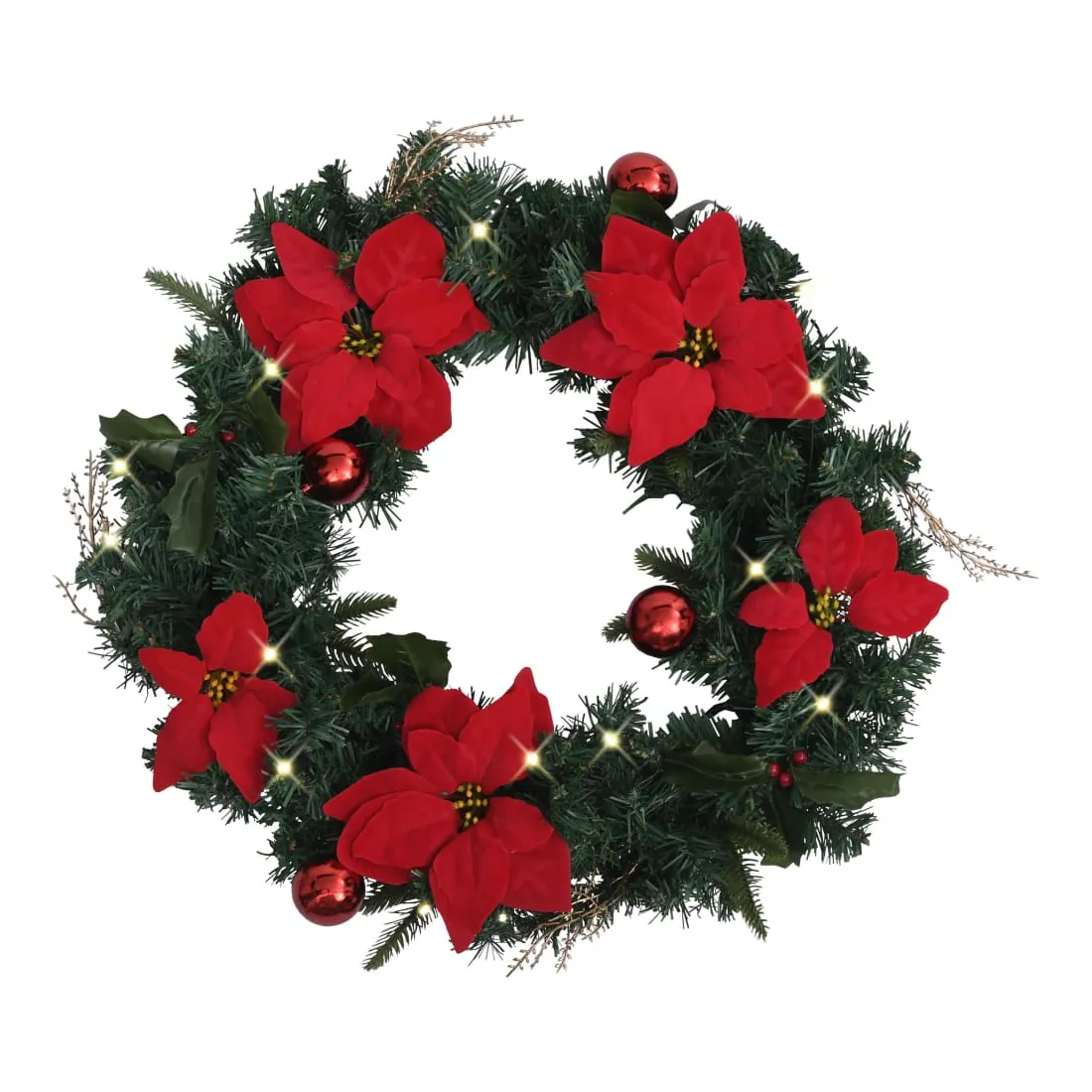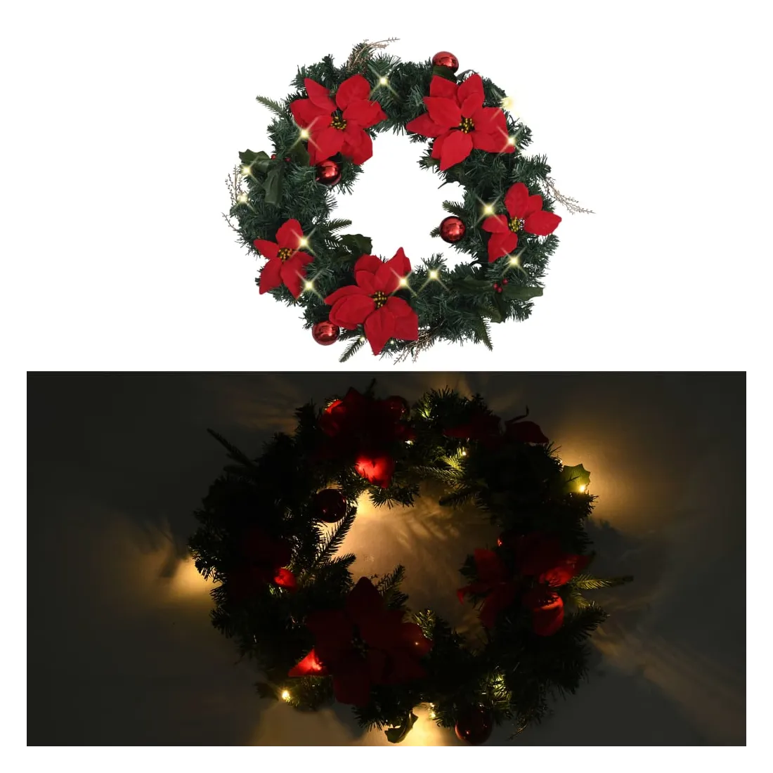 Couronne de Noël avec lumières LED vert 60 cm PVC