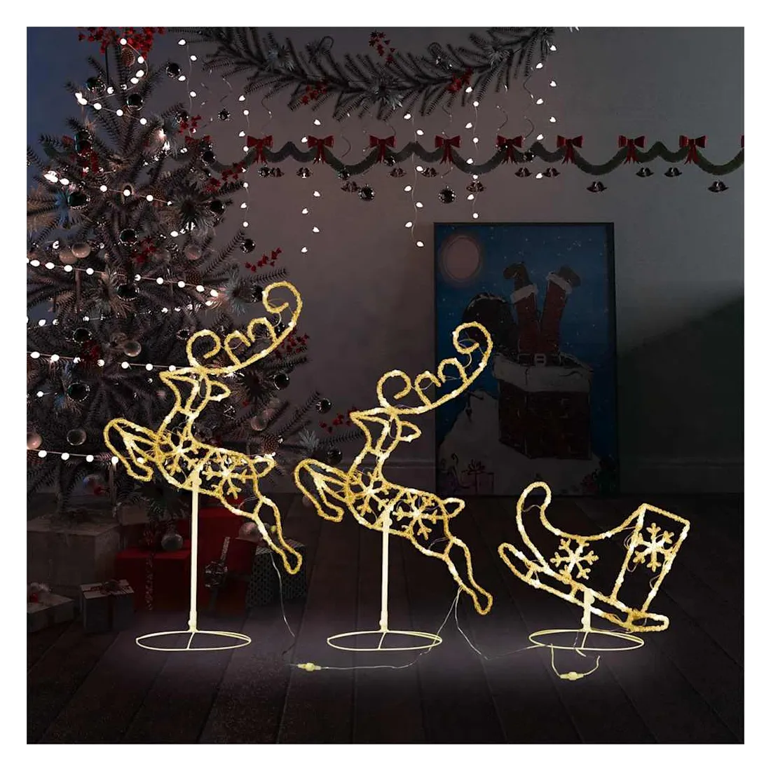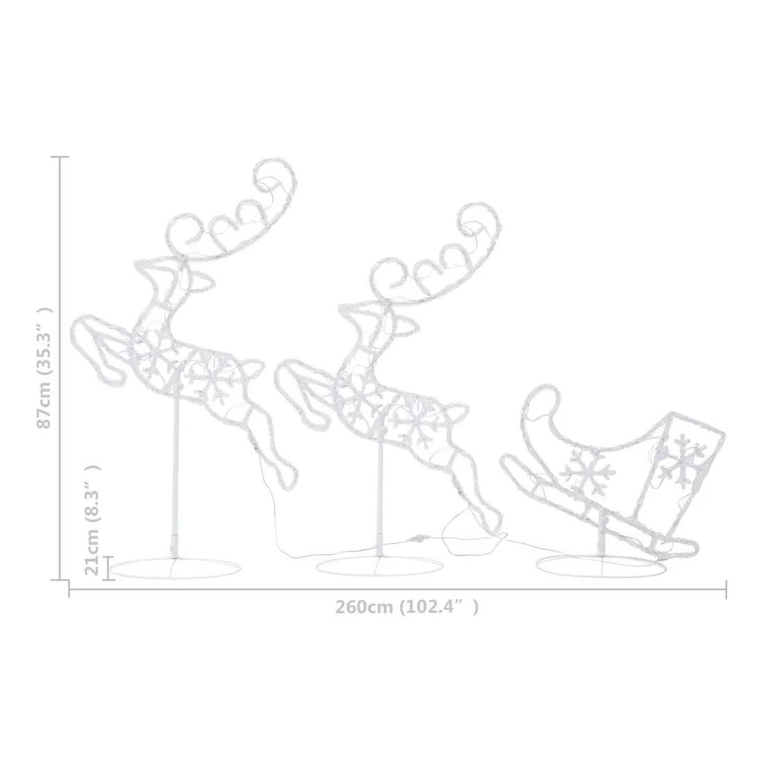 Renne/traîneaux Noël volant Acrylique 260x21x87cm Blanc chaud
