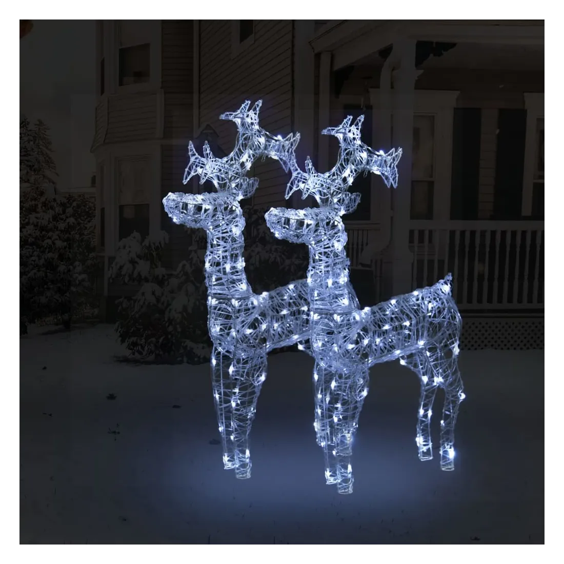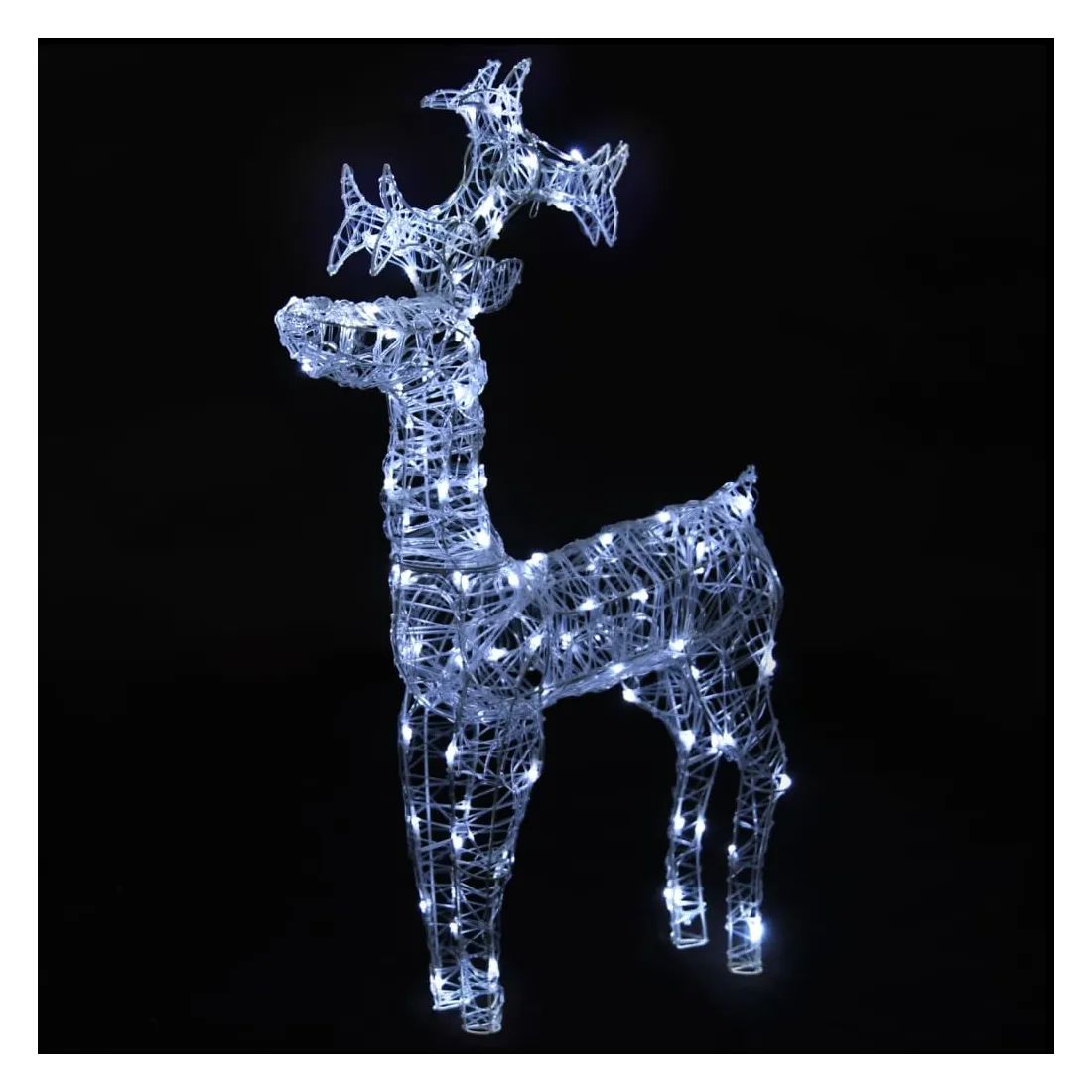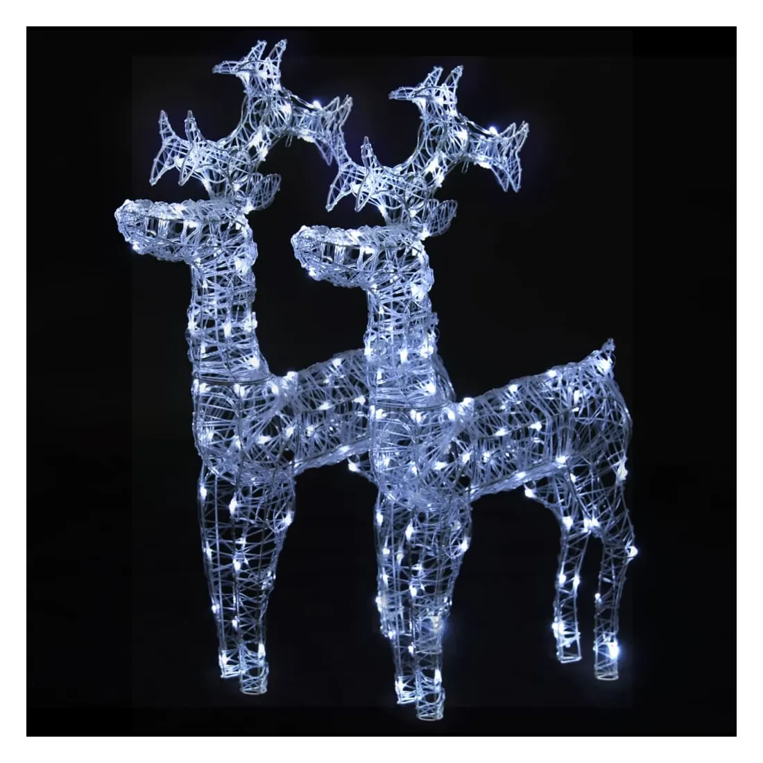 vidaXLCréez un spectacle étonnant dans votre jardin ou votre maison ce Noël avec ces magnifiques décorations de rennes de Noël sur pied, illuminées par des LED blanc froid ! Matériau résistant aux intempéries : ces rennes éclairés sont fabriqués en acrylique, et ils peuvent résister à l'humidité et à la pluie. Ils peuvent également être facilement nettoyés avec un chiffon humide si nécessaire.LED à économie d'énergie : ces rennes lumineux sont pré-éclairés avec 90 LED, qui sont économes en énergie et durables.Effets d'éclairage colorés : ces décorations de Noël sont conçues avec 8 effets d'éclairage différents : mode combiné, vagues, mode séquentiel, mode d'allumage lent, clignotant, mode d'atténuation lente, scintillement et éclairage continu, qui éclairent magnifiquement et créent une atmosphère de vacances magique. Remarque :Le connecteur USB inclus n'est pas étanche, cette partie doit donc éviter l'eau, mais grâce au câble d'extension, la décoration de Noël peut être utilisée à l'extérieur car le câble et le produit sont étanches.Ce produit est doté d'un connecteur USB, mais la source d'alimentation certifiée de USB 5V n'est pas incluse.