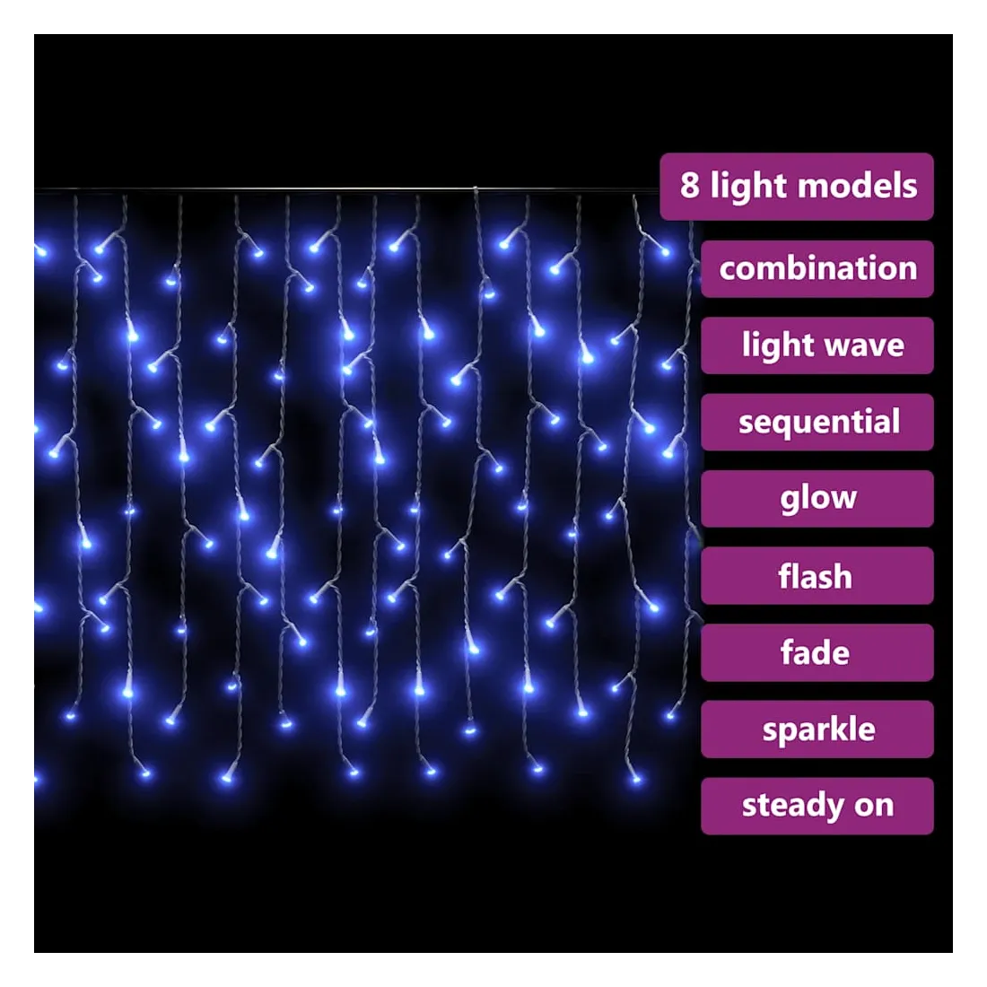 Ce rideau lumineux à glaçons est excellent pour une utilisation comme un complément d’éclairage à tout projet décoratif. Il est adapté pour Noël, fêtes, mariages et autres jours fériés. La guirlande lumineuse est équipée de 400 LED à économie d’énergie, créant une performance d’éclairage magique. Elle dispose de 8 effets lumineux différents : mode combiné, vagues, mode séquentiel, mode de lueur lente, clignotement, mode d'atténuation lente, scintillement et éclairage continu. C’est un excellent accessoire décoratif pour éclairer les espaces intérieurs et extérieurs. Remarque: l'USB inclus n'est pas étanche, donc cette partie doit éviter l'eau, mais grâce au câble de 3 m, la décoration de Noël peut être utilisée à l’extérieur car le câble et le produit sont étanches. Ce produit est doté d'un connecteur USB, mais la source d'alimentation certifiée de USB 5V n'est pas incluse.