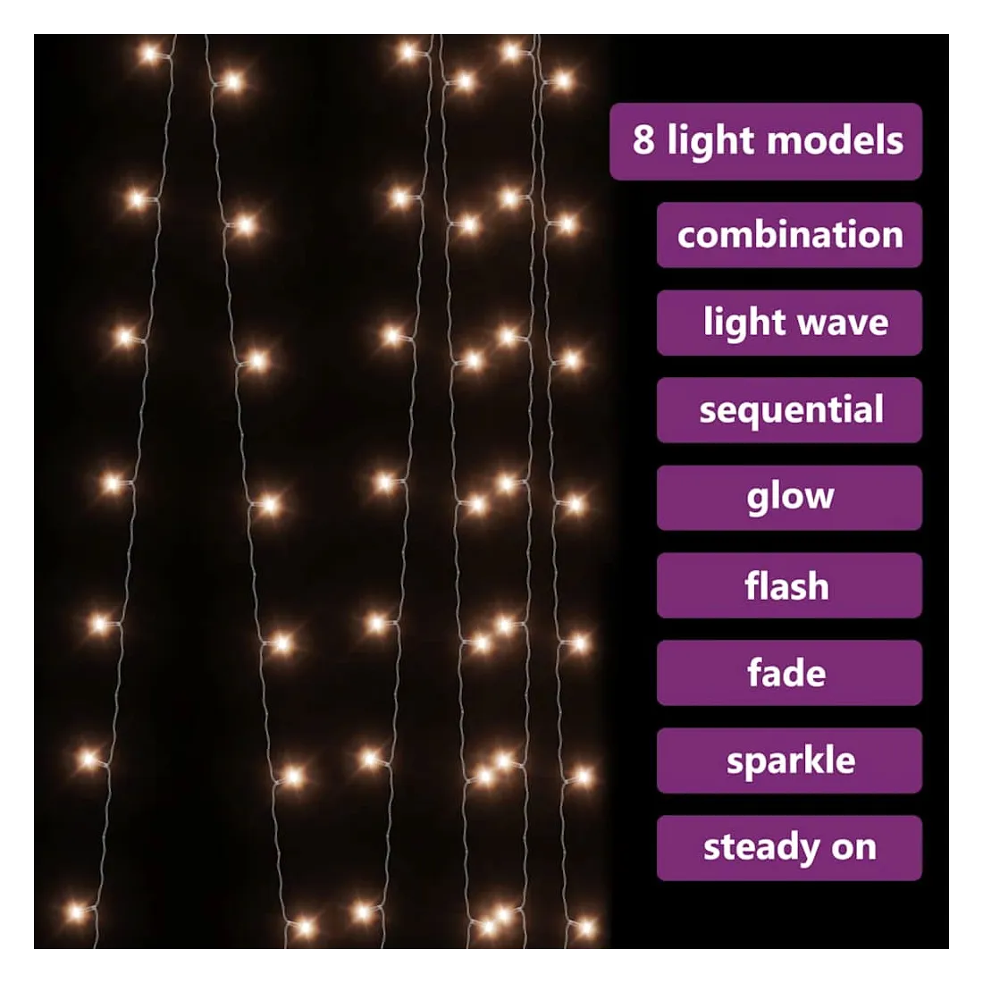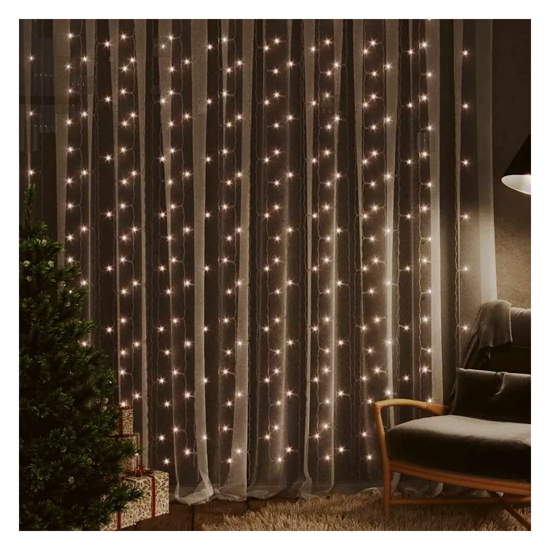 Ce rideau lumineux est excellent pour une utilisation comme un complément d’éclairage à tout projet décoratif. Il est adapté pour Noël, fêtes, mariages et autres jours fériés. La guirlande lumineuse est équipée de 300 LED à économie d’énergie, créant une performance d’éclairage magique. Elle dispose de 8 effets lumineux différents : mode combiné, vagues, mode séquentiel, mode de lueur lente, clignotement, mode d'atténuation lente, scintillement et éclairage continu. C’est un excellent accessoire décoratif pour éclairer les espaces intérieurs et extérieurs. Remarque: l'USB inclus n'est pas étanche, donc cette partie doit éviter l'eau, mais grâce au câble de 3 m, la décoration de Noël peut être utilisée à l’extérieur car le câble et le produit sont étanches. Ce produit est doté d'un connecteur USB, mais la source d'alimentation certifiée de USB 5V n'est pas incluse.