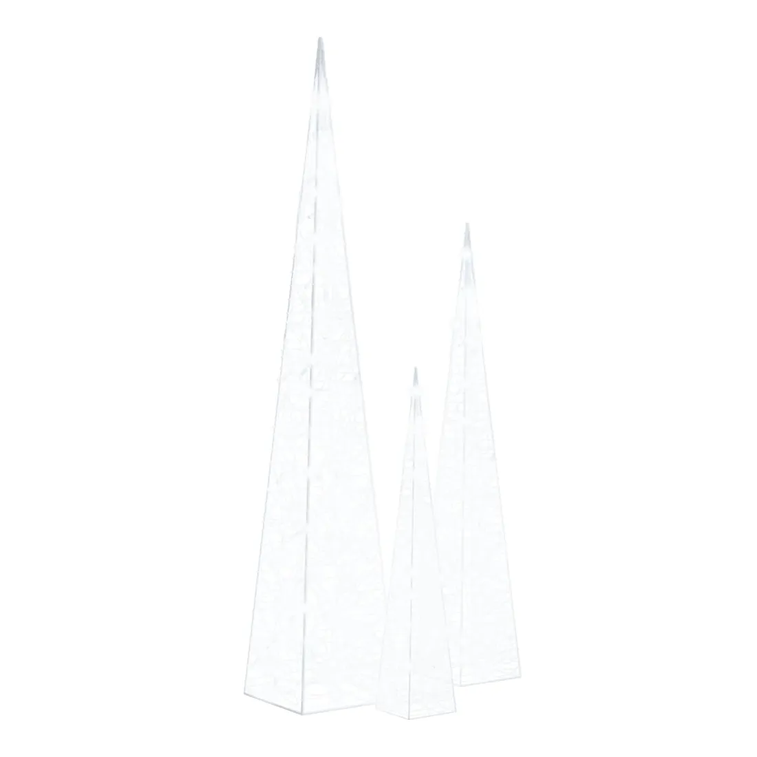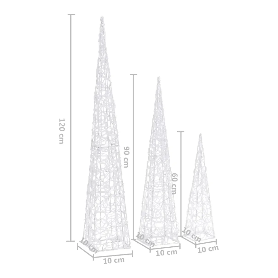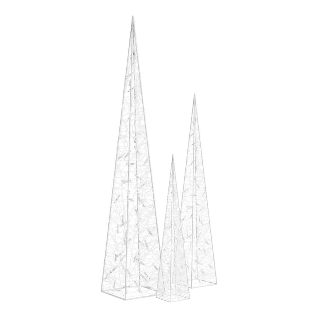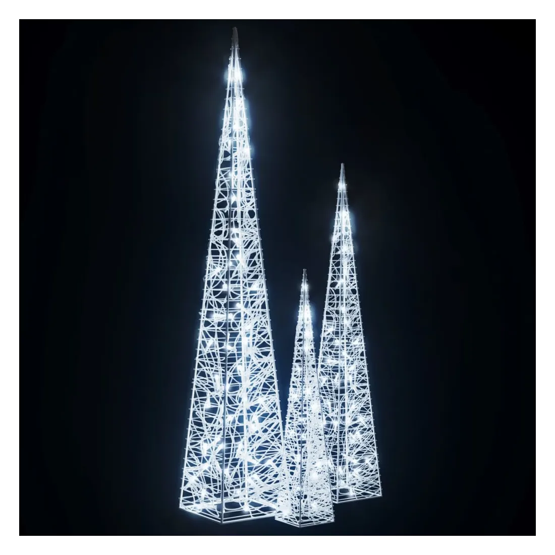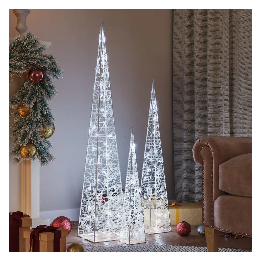 Avec cet ensemble de cônes lumineux à LED, vous pouvez créer une ambiance chaleureuse et festive pour vos vacances de Noël, à l'intérieur ainsi qu'à l'extérieur. L'ensemble contient 3 cônes lumineux de hauteur différente. Le corps du cône lumineux décoratif est fabriqué en acrylique, ce qui donne un aspect luxueux, glacé et brillant qui illumine la zone autour de celui-ci. Équipé de LED à économie d’énergie, il fournit un éclairage lumineux et puissant. Il a 8 effets d’éclairage différents : mode combiné, vagues, mode séquentiel, mode d'allumage lent, clignotement, mode d'extinction lent, scintillement et éclairage continu. Ce magnifique ensemble de cônes lumineux de Noël est étanche, ce qui rend le produit adapté à une utilisation à l'intérieur et à l'extérieur. Remarque : si vous utilisez le produit à l'extérieur, assurez-vous que la connexion USB est branchée à l'intérieur dans un environnement sec.