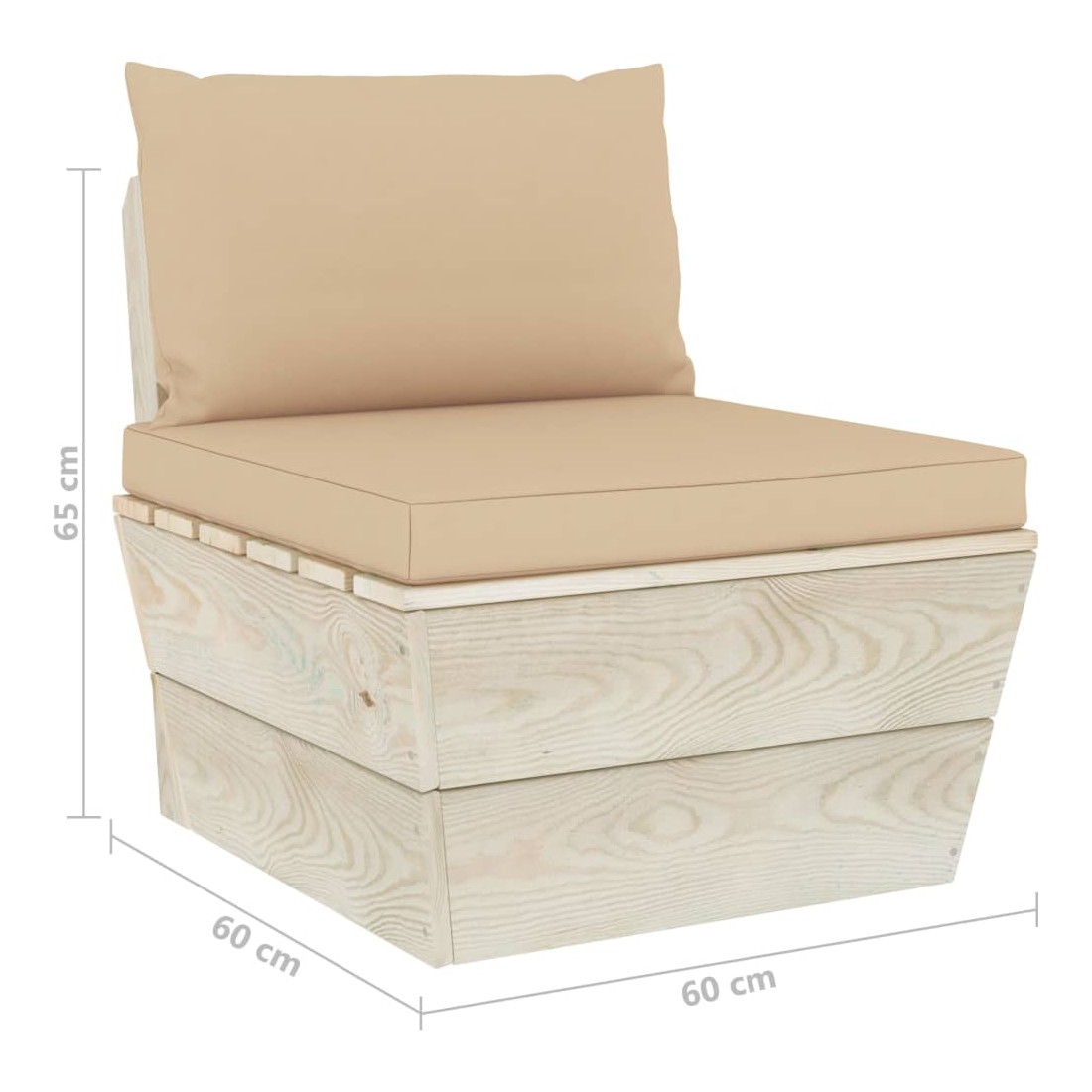Canapé central palette de jardin avec coussins Épicéa imprégné