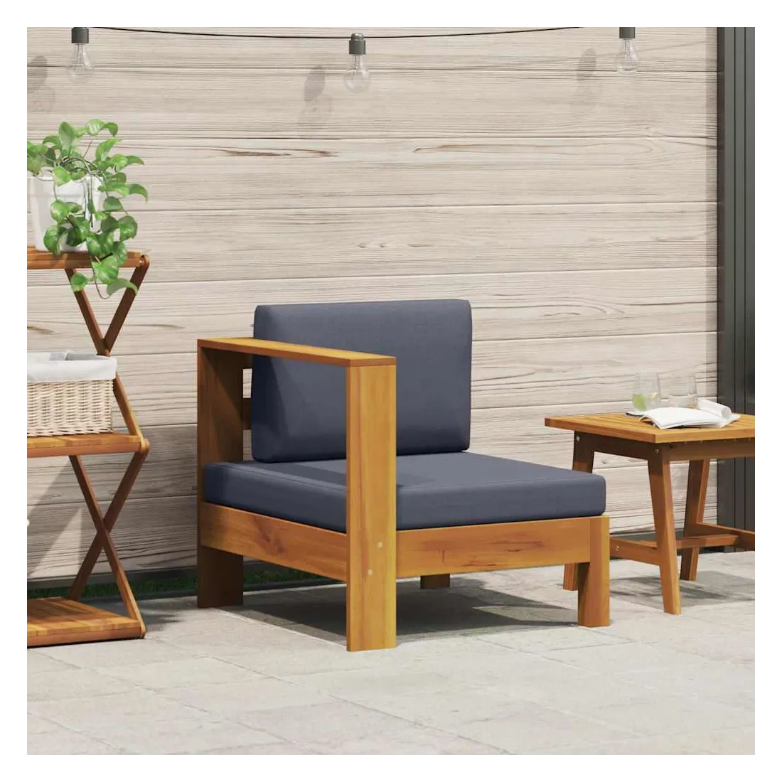 Ce canapé central allie style et fonctionnalité et est conçu pour l'extérieur toute l'année. Ce canapé de jardin est en bois d'acacia massif, un bois dur aux grains denses. Le canapé magnifiquement conçu est stable, durable et accrocheur. De plus, le savoir-faire exquis et les beaux grains de bois rendent chaque pièce légèrement différente l'une de l'autre. Vous pouvez placer votre bras sur l'accoudoir. Les coussins bien rembourrés offrent un confort optimal. Vous pouvez le combiner avec d'autres meubles pour créer vos configurations personnelles de salon de jardin ! Remarque : afin de prolonger la durée de vie de vos meubles d'extérieur, nous vous recommandons de les nettoyer régulièrement et de ne pas les laisser à l'extérieur sans protection inutilement.Nettoyage : Utiliser une solution savonneuse douce.Stockage : si possible, stockez dans un endroit frais et sec à l'intérieur. Si le produit est stocké à l'extérieur, protégez-le avec une housse imperméable. Essuyez et séchez l'excès d'eau ou de neige des surfaces planes après la pluie ou une chute de neige. Permettez une circulation d'air suffisante afin d'éviter les dommages liés à l'humidité.