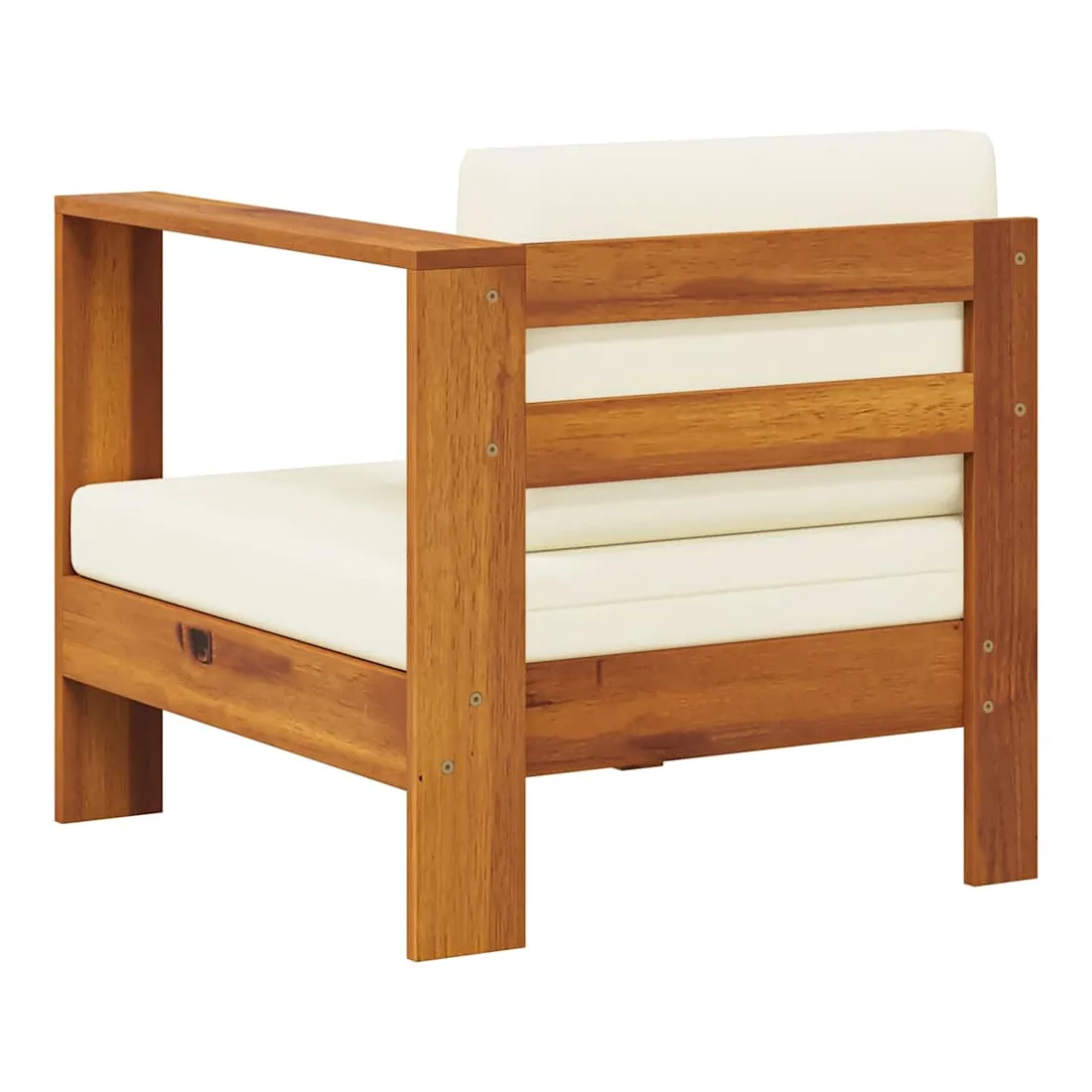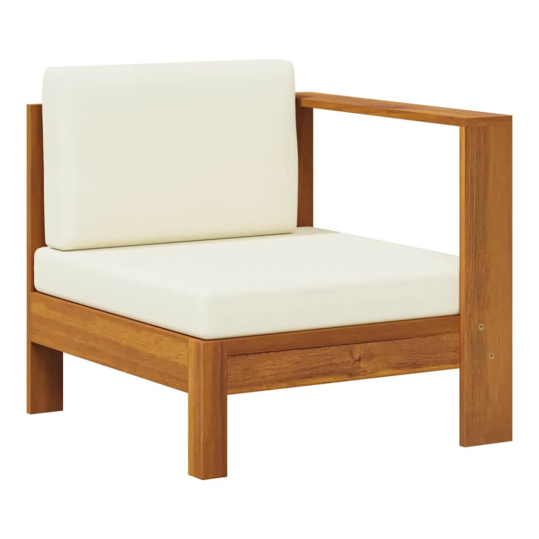 Ce canapé central allie style et fonctionnalité et est conçu pour l'extérieur toute l'année. Ce canapé de jardin est en bois d'acacia massif, un bois dur aux grains denses. Le canapé magnifiquement conçu est stable, durable et accrocheur. De plus, le savoir-faire exquis et les beaux grains de bois rendent chaque pièce légèrement différente l'une de l'autre. Vous pouvez placer votre bras sur l'accoudoir. Les coussins bien rembourrés offrent un confort optimal. Vous pouvez le combiner avec d'autres meubles pour créer vos configurations personnelles de salon de jardin ! Remarque : afin de prolonger la durée de vie de vos meubles d'extérieur, nous vous recommandons de les nettoyer régulièrement et de ne pas les laisser à l'extérieur sans protection inutilement.Nettoyage : Utiliser une solution savonneuse douce.Stockage : si possible, stockez dans un endroit frais et sec à l'intérieur. Si le produit est stocké à l'extérieur, protégez-le avec une housse imperméable. Essuyez et séchez l'excès d'eau ou de neige des surfaces planes après la pluie ou une chute de neige. Permettez une circulation d'air suffisante afin d'éviter les dommages liés à l'humidité.