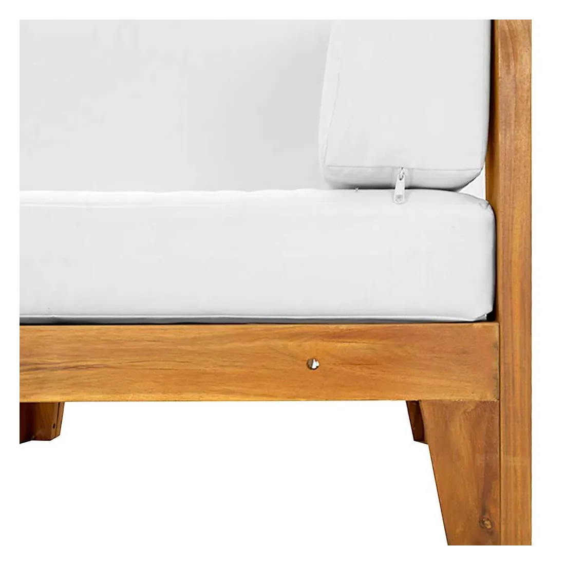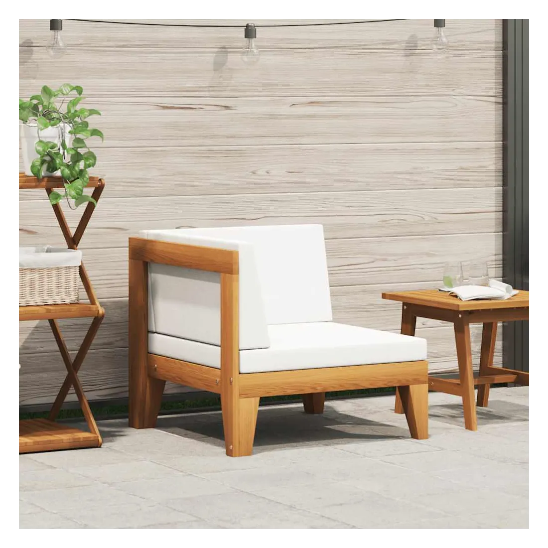 Ce canapé d'angle en bois est un choix idéal pour vous détendre, profiter du beau temps, faire une sieste ou discuter en famille ou entre amis. Avec son design indémodable, cette chaise d'angle ajoute une touche de charme rustique à votre espace de vie. Le siège d’angle est fabriqué en bois d’acacia massif, un bois dur tropical, qui est résistant aux intempéries et très durable. Il a une construction solide et nécessite peu d’entretien. Combiné avec des coussins bien rembourrés, ce canapé offre le plus grand confort. Le canapé en bois est spécialement conçu pour faire partie d'un ensemble de salon et peut également être utilisé comme un canapé simple. Vous pouvez le combiner avec d’autres segments modulaires comme table basse, repose-pied et canapé central pour créer vos propres configurations de salon de jardin ! Remarque : afin de prolonger la durée de vie de vos meubles d'extérieur, nous vous recommandons de les nettoyer régulièrement et de ne pas les laisser à l'extérieur sans protection inutilement.Nettoyage : Utiliser une solution savonneuse douce.Stockage : si possible, stockez dans un endroit frais et sec à l'intérieur. Si le produit est stocké à l'extérieur, protégez-le avec une housse imperméable. Essuyez et séchez l'excès d'eau ou de neige des surfaces planes après la pluie ou une chute de neige. Permettez une circulation d'air suffisante afin d'éviter les dommages liés à l'humidité.