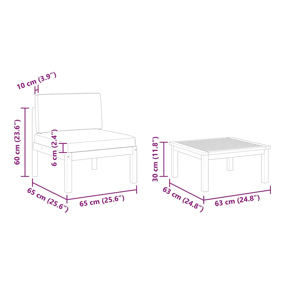 - Dimensions du canapé central : 65 x 65 x 60 cm (l x P x H)