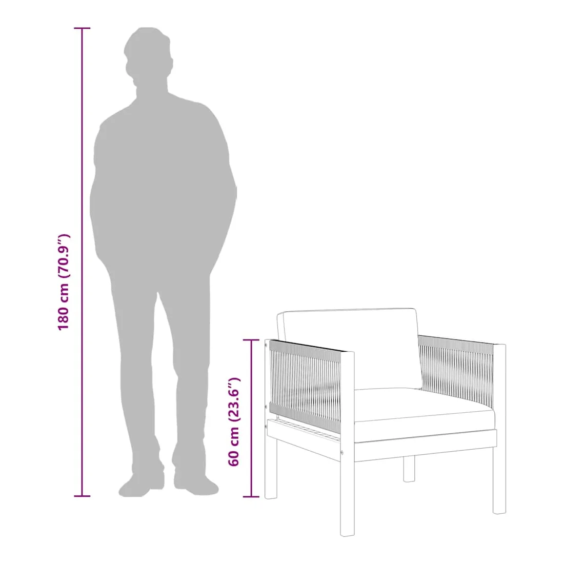 • Hauteur d'assise (coussin compris) : 35 cm