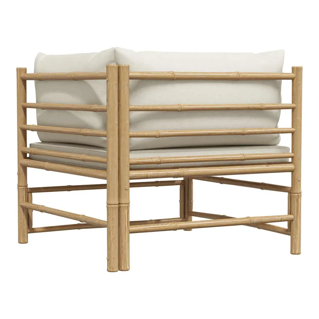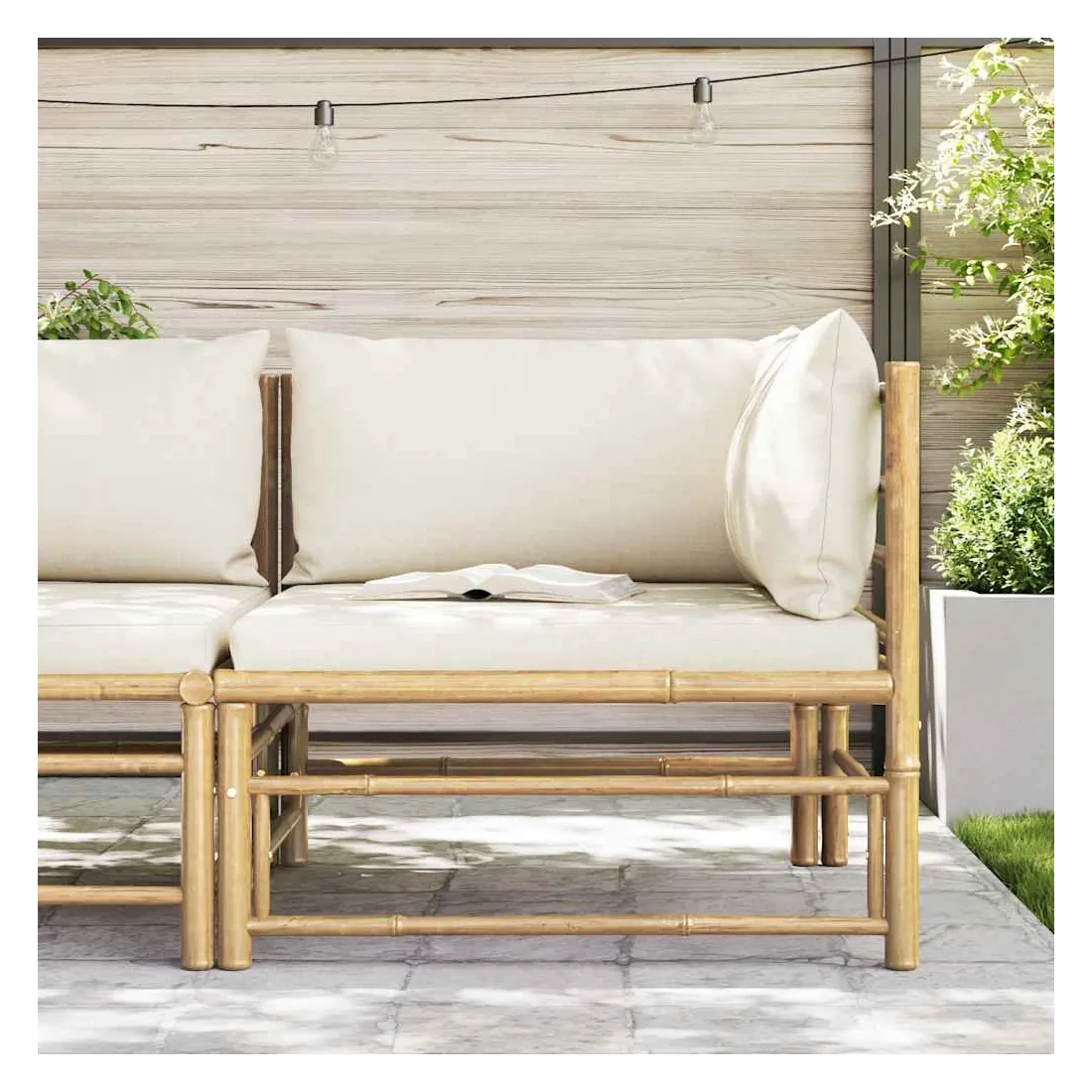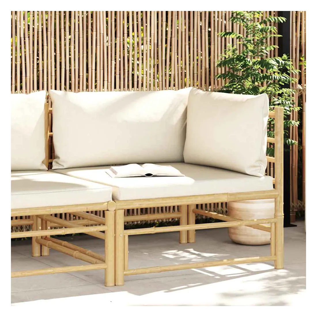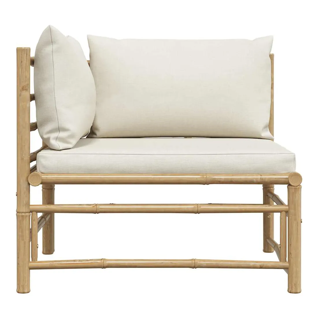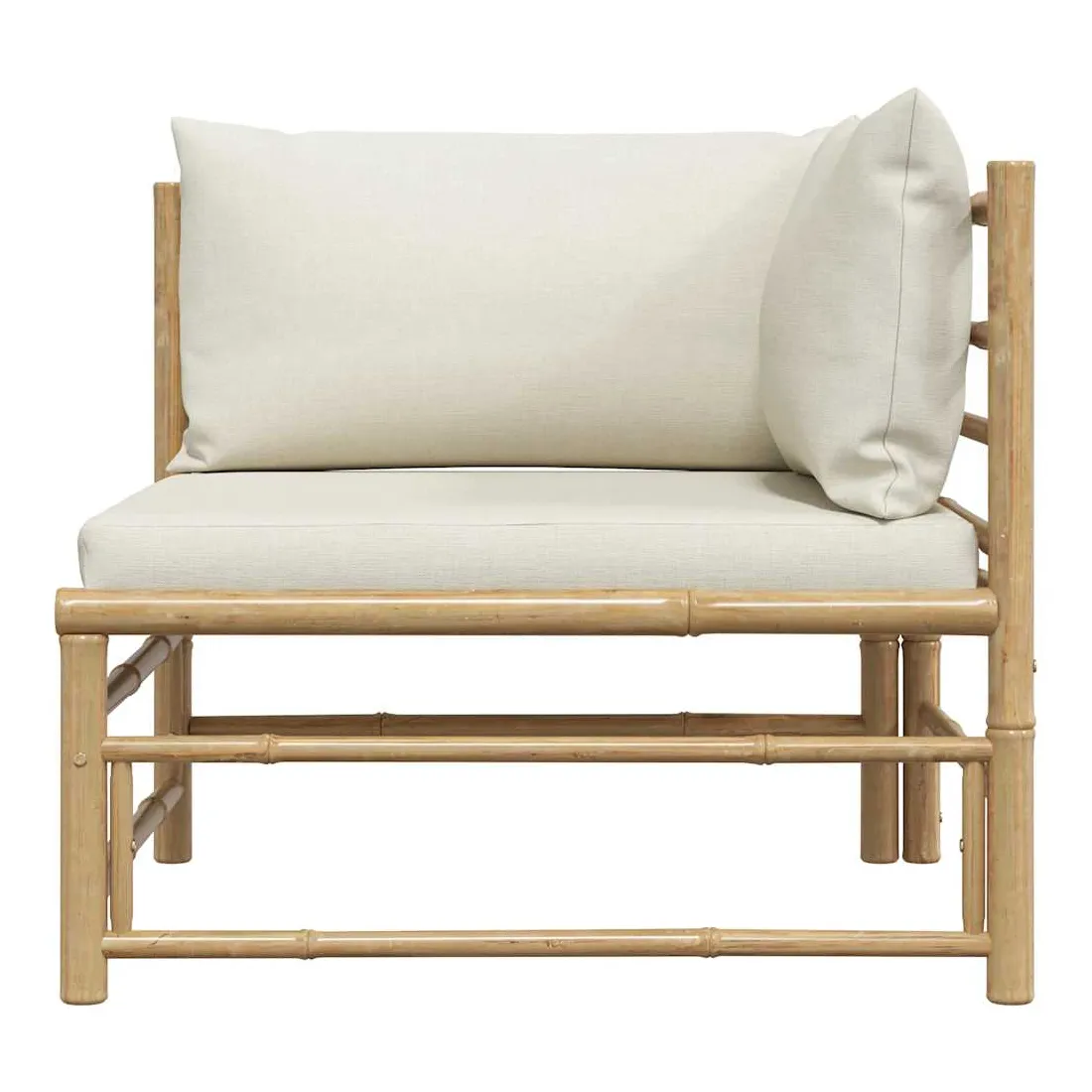 Canapé d'angle de jardin avec coussins blanc crème Bambou