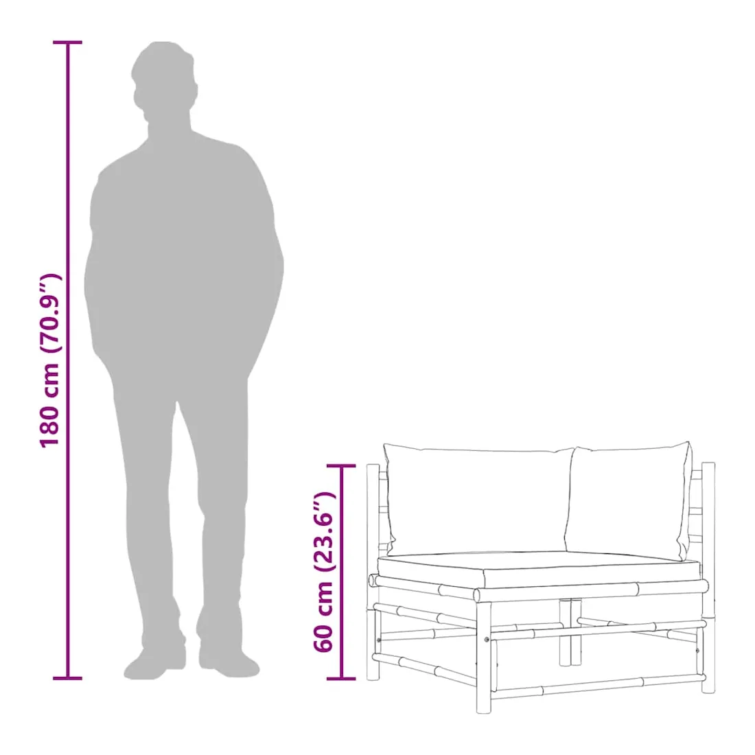 Ce canapé d'angle de jardin sera un excellent supplément à votre jardin, terrasse ou patio pour discuter en famille et entre amis ou tout simplement profiter du beau temps. Ce canapé d'extérieur est fabriqué en bambou, ce qui le rend robuste et facile à nettoyer. Les coussins de siège et de dossier bien rembourrés ajoutent du confort supplémentaire à votre temps de détente. Avec une construction légère, le canapé de jardin est facile à déplacer. Vous pouvez le placer dans n’importe quelle disposition selon vos préférences, grâce à sa conception modulaire. Remarque : Afin de prolonger la durée de vie de vos meubles d'extérieur, nous vous recommandons de les nettoyer régulièrement et de ne pas les laisser à l'extérieur sans protection inutilement.Nettoyage : Utiliser une solution savonneuse douceStockage : Si possible, stockez dans un endroit frais et sec à l'intérieur. Si le produit est stocké à l'extérieur, protégez-le avec une housse imperméable. Essuyez et séchez l'excès d'eau ou de neige des surfaces planes après la pluie ou une chute de neige. Permettez une circulation d'air suffisante afin d'éviter les dommages liés à l'humidité.