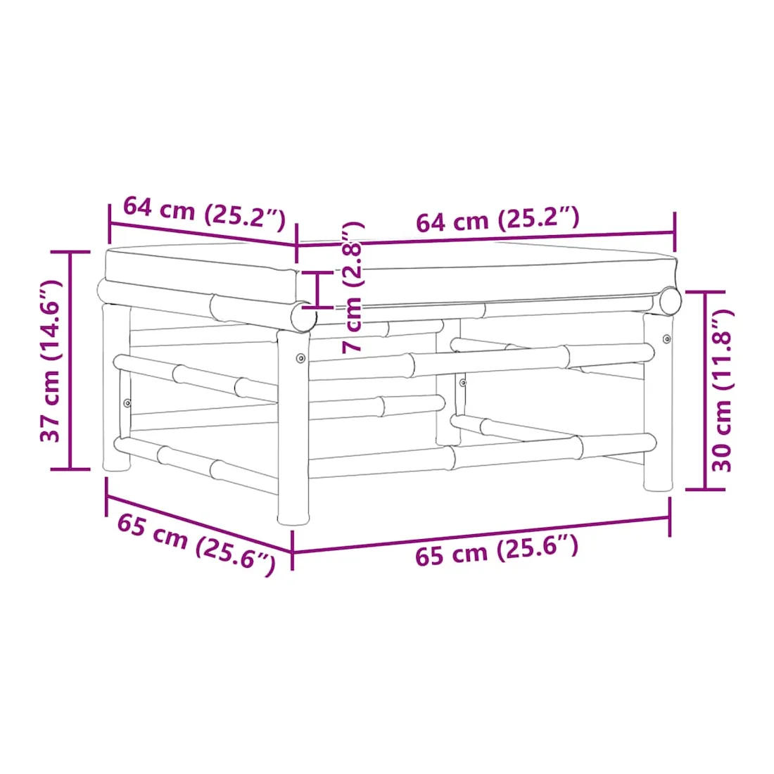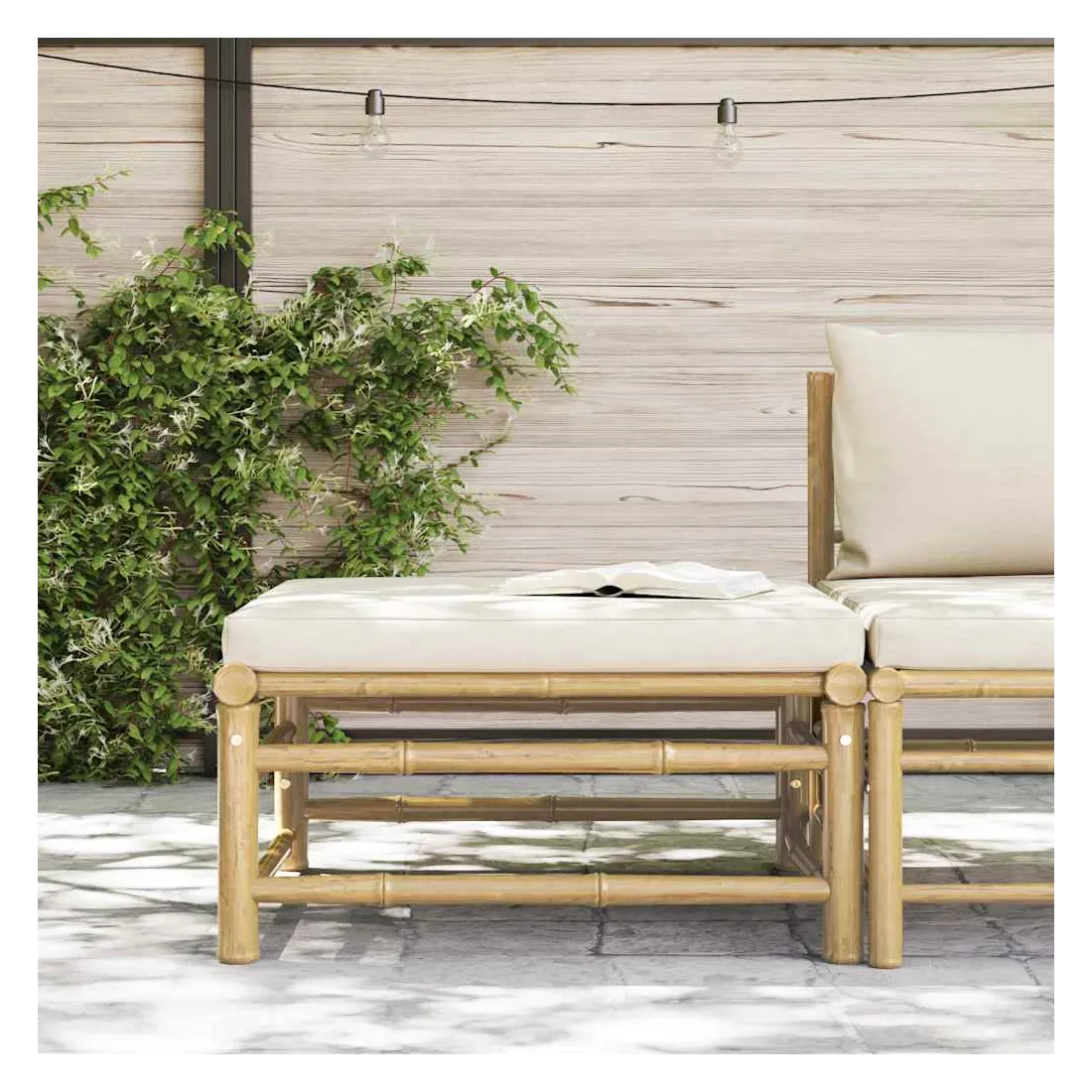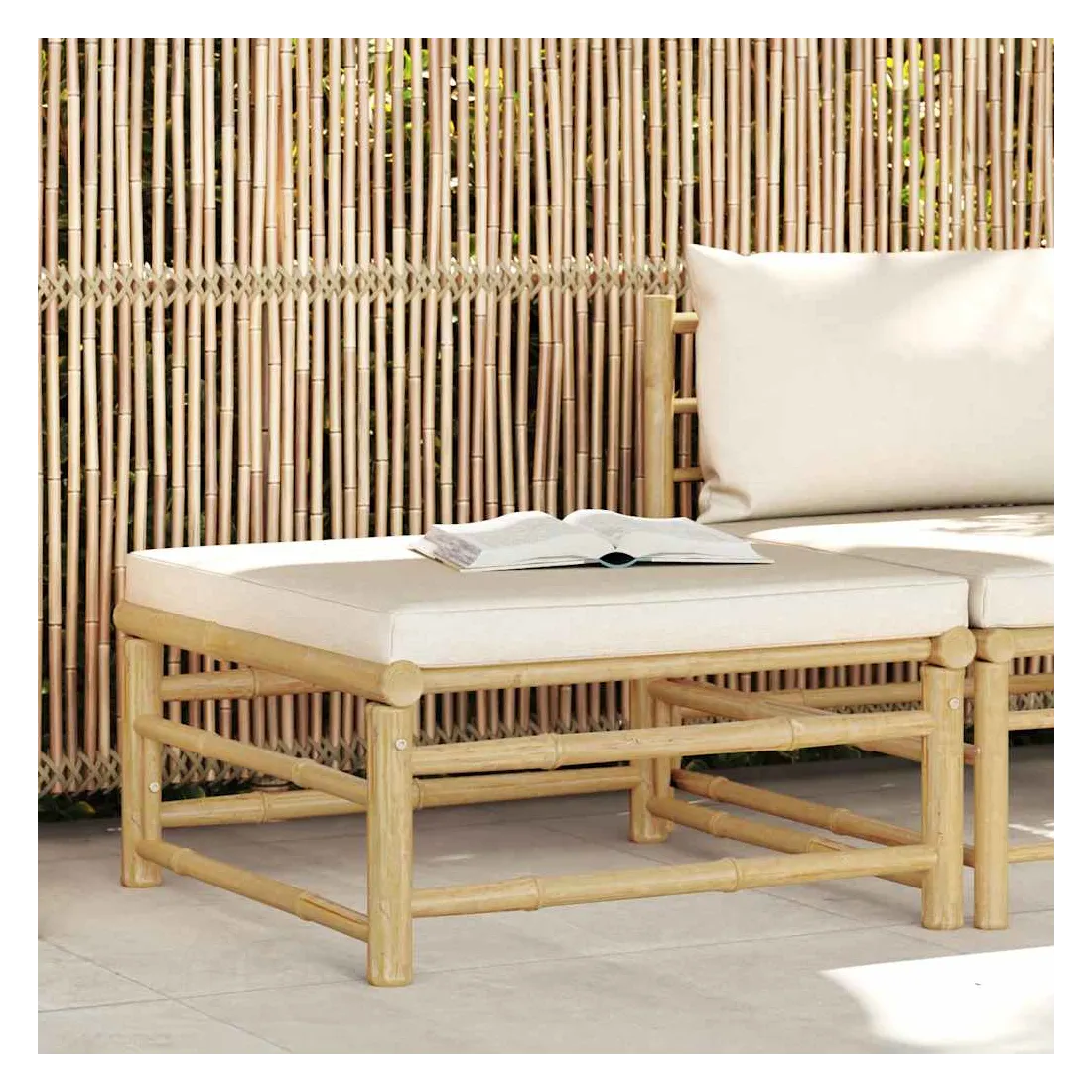 Ce repose-pied de jardin sera un excellent supplément à votre jardin, terrasse ou patio pour discuter en famille et entre amis ou tout simplement profiter du beau temps. Ce pouf est fabriqué en bambou, ce qui le rend robuste et facile à nettoyer. Le coussin bien rembourré ajoute du confort supplémentaire à votre temps de détente. Avec une construction légère, le repose-pied de jardin est facile à déplacer. Vous pouvez le placer dans n’importe quelle disposition selon vos préférences, grâce à sa conception modulaire. Remarque : Afin de prolonger la durée de vie de vos meubles d'extérieur, nous vous recommandons de les nettoyer régulièrement et de ne pas les laisser à l'extérieur sans protection inutilement.Nettoyage : Utiliser une solution savonneuse douceStockage : Si possible, stockez dans un endroit frais et sec à l'intérieur. Si le produit est stocké à l'extérieur, protégez-le avec une housse imperméable. Essuyez et séchez l'excès d'eau ou de neige des surfaces planes après la pluie ou une chute de neige. Permettez une circulation d'air suffisante afin d'éviter les dommages liés à l'humidité.