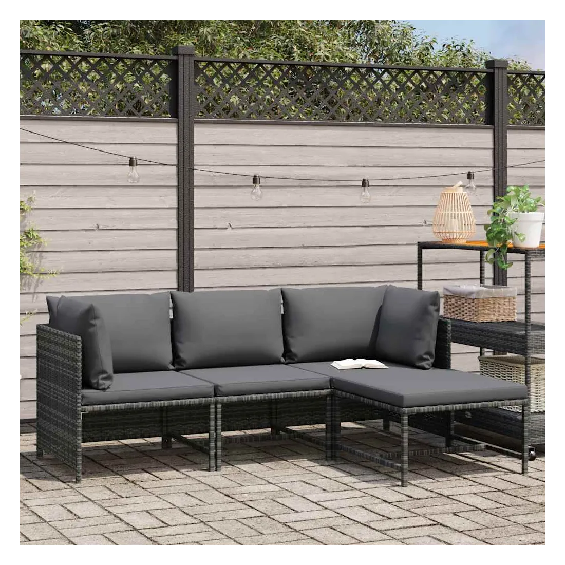 Créez un espace de détente attrayant et relaxant dont vous avez toujours rêvé avec ce salon de jardin. Vous pouvez profiter d’un après-midi ensoleillé ou d'une soirée d'été relaxante avec votre famille et vos amis grâce à cet ensemble de meubles de patio ! Avec de la résine tressée résistante aux intempéries, l'ensemble de meubles d'extérieur est facile à nettoyer et à entretenir. Le cadre en acier enduit de poudre rend l'ensemble stable et solide. Équipé de coussins épais et moelleux, cet ensemble de mobilier d'extérieur offrira un confort d’assise ultime. Les housses en polyester, faciles à nettoyer, sont amovibles et lavables. De plus, grâce à leur conception légère et modulaire, vous pouvez déplacer cet ensemble dans votre maison avec une grande facilité. Remarque : Afin de prolonger la durée de vie de vos meubles d'extérieur, nous vous recommandons de les nettoyer régulièrement et de ne pas les laisser à l'extérieur sans protection inutilement.Nettoyage : Utiliser une solution savonneuse douceStockage : Si possible, stockez dans un endroit frais et sec à l'intérieur. Si le produit est stocké à l'extérieur, protégez-le avec une housse imperméable. Essuyez et séchez l'excès d'eau ou de neige des surfaces planes après la pluie ou une chute de neige. Permettez une circulation d'air suffisante afin d'éviter les dommages liés à l'humidité.
