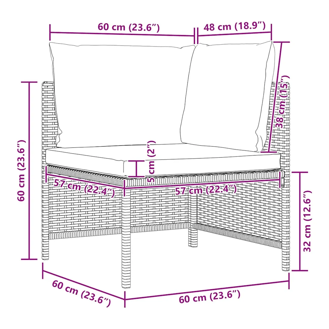 - Dimensions du canapé de milieu : 54 x 60 x 60 cm (l x P x H)