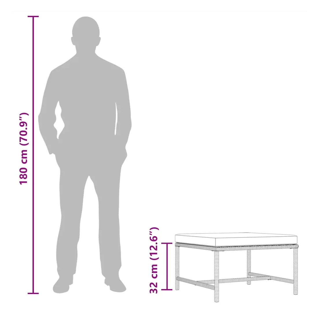 Ce repose-pied sectionnel allie style et fonctionnalité et est conçu pour être utilisé à l'extérieur toute l'année. Grâce à la résine tressée résistante aux intempéries, le repose-pied est léger, résistant à l'usure et adapté à une utilisation quotidienne. Le repose-pied est doté d’un cadre robuste en acier enduit de poudre, qui est très durable. Ce repose-pied de jardin est spécialement conçu pour servir comme une partie de l’ensemble de salon et il peut également être utilisé comme table basse. Vous pouvez le combiner avec d’autres segments modulaires comme canapé de milieu et canapé d'angle pour créer vos propres configurations de salon de jardin ! Les coussins épais et amovibles sont très confortables. Remarque : Afin de prolonger la durée de vie de vos meubles d'extérieur, nous vous recommandons de les nettoyer régulièrement et de ne pas les laisser à l'extérieur sans protection inutilement.Nettoyage : Utiliser une solution savonneuse douce.Stockage : Si possible, stockez dans un endroit frais et sec à l'intérieur. Si le produit est stocké à l'extérieur, protégez-le avec une housse imperméable. Essuyez et séchez l'excès d'eau ou de neige des surfaces planes après la pluie ou une chute de neige. Permettez une circulation d'air suffisante afin d'éviter les dommages liés à l'humidité.