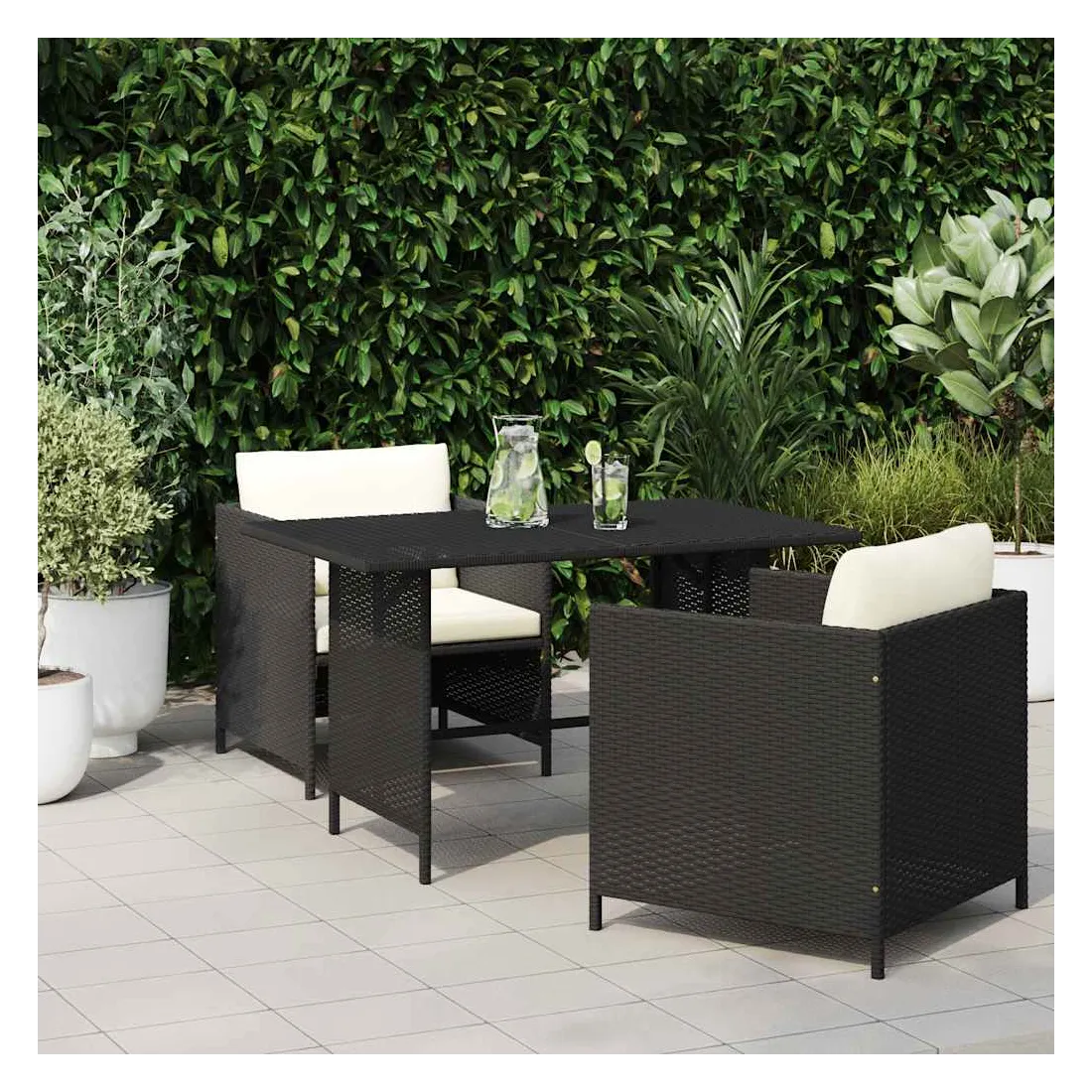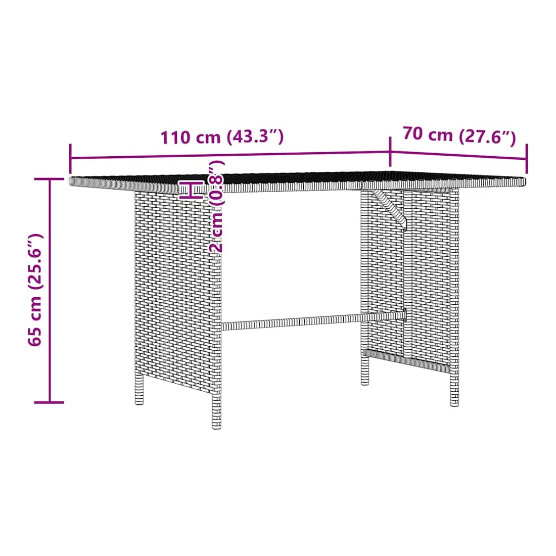 Cette table de salle à manger de jardin élégante et pratique se veut un excellent supplément dans votre jardin et sur votre patio. Fabriquée en résine tressée résistante à l'eau, la table de jardin est facile à nettoyer et convient à une utilisation quotidienne dehors. Le cadre en acier enduit de poudre offre une stabilité supplémentaire à la table. Grâce à sa construction légère, la table d’extérieur est facile à déplacer. Remarque : afin de prolonger la durée de vie des meubles d'extérieur, nous vous recommandons de les protéger avec une housse imperméable.