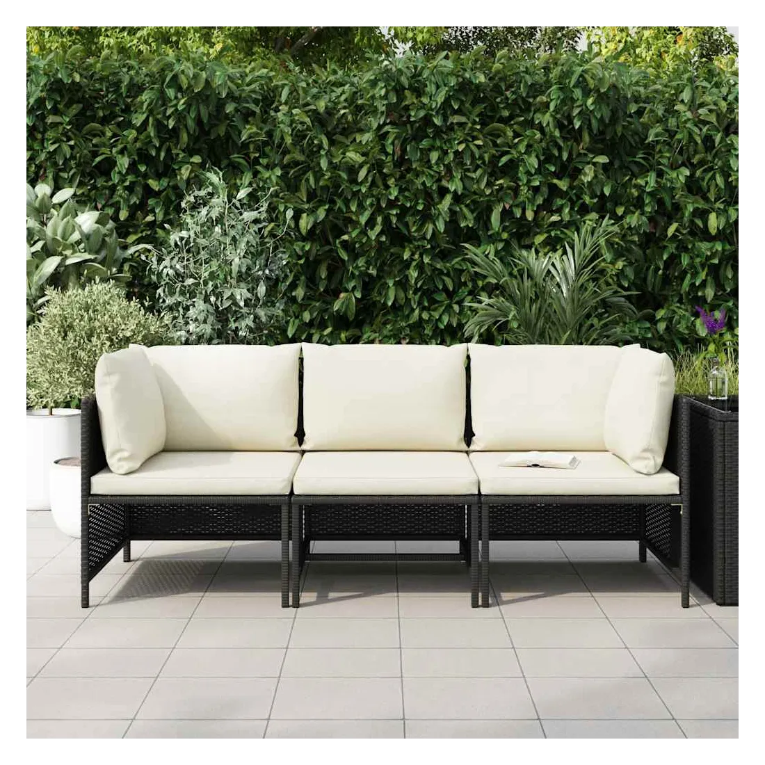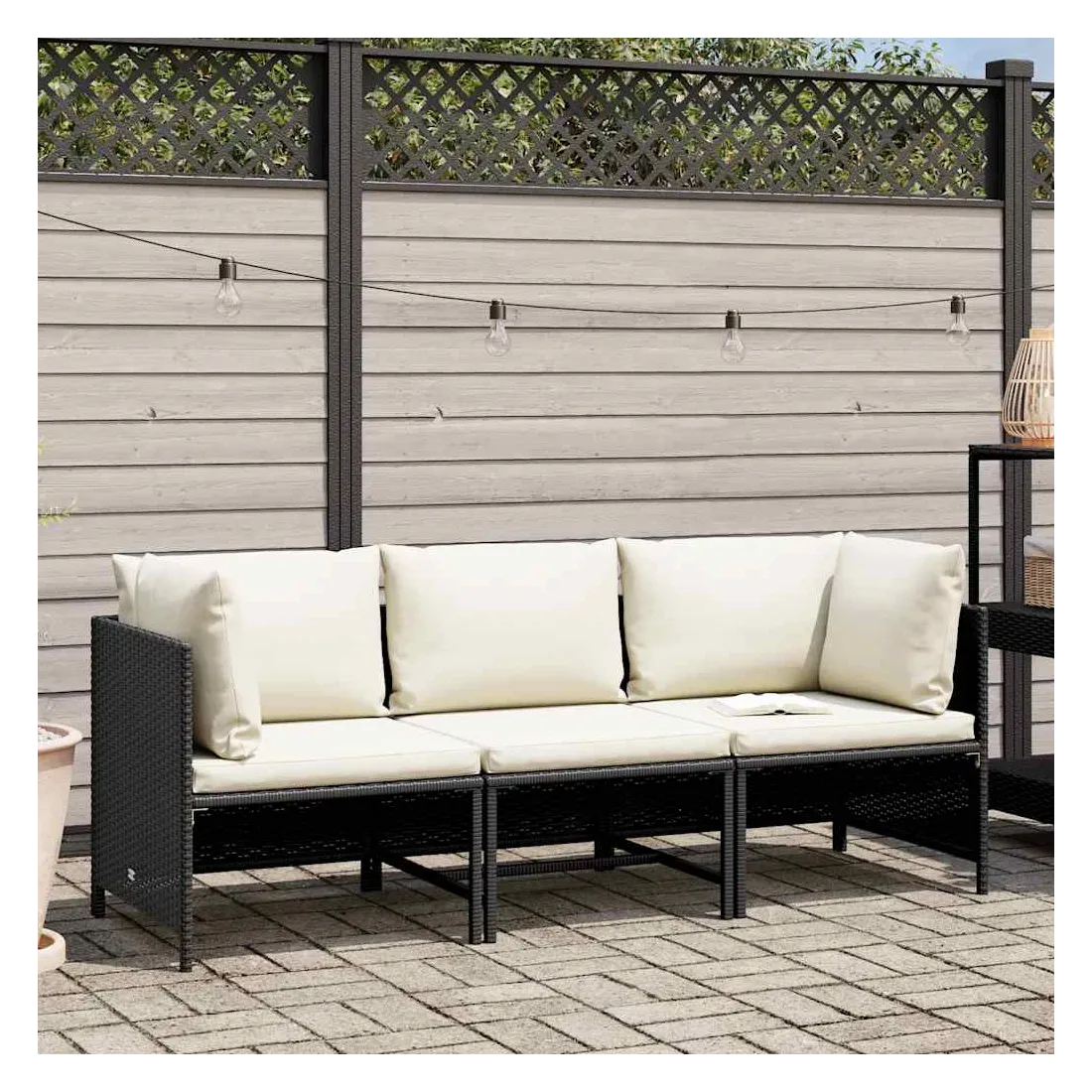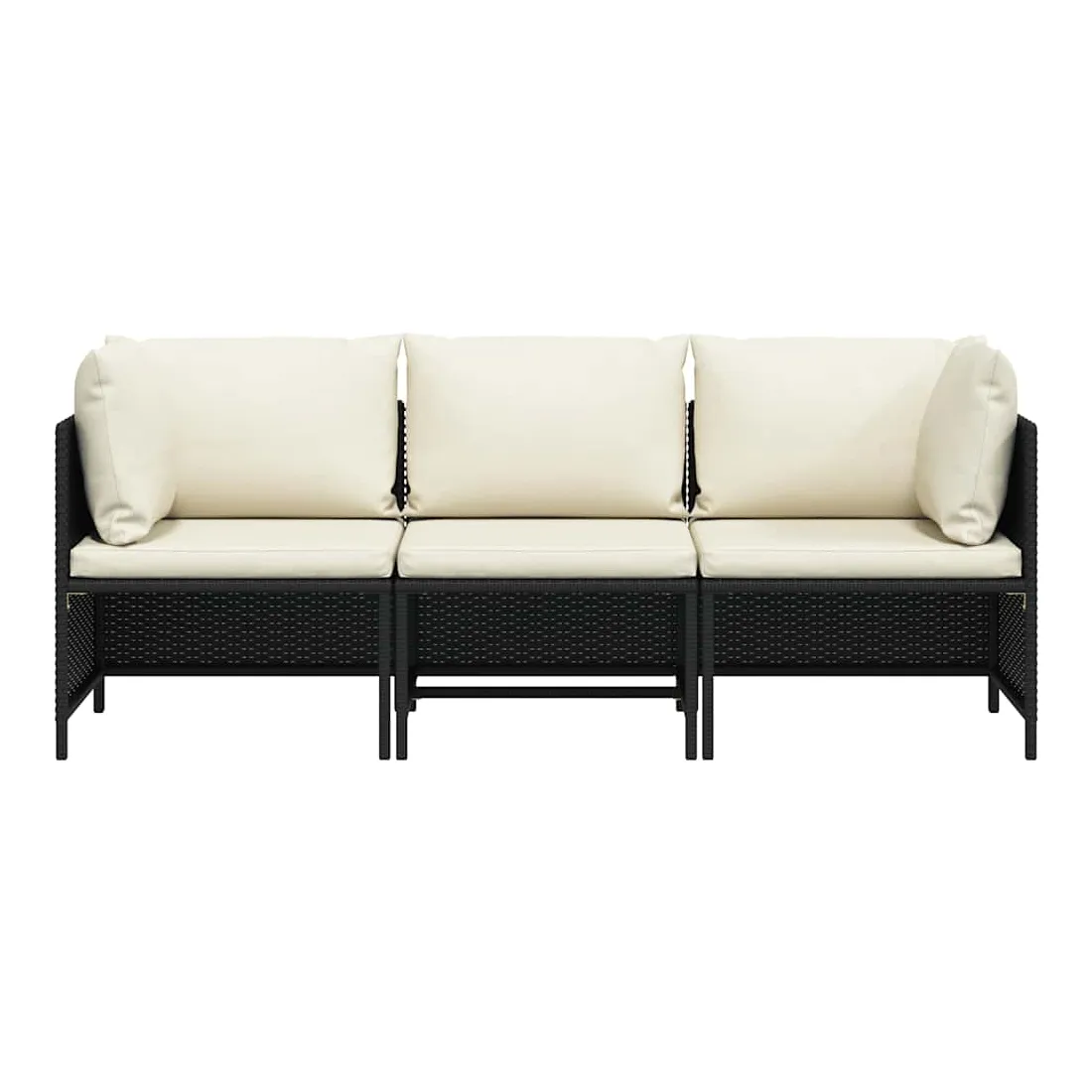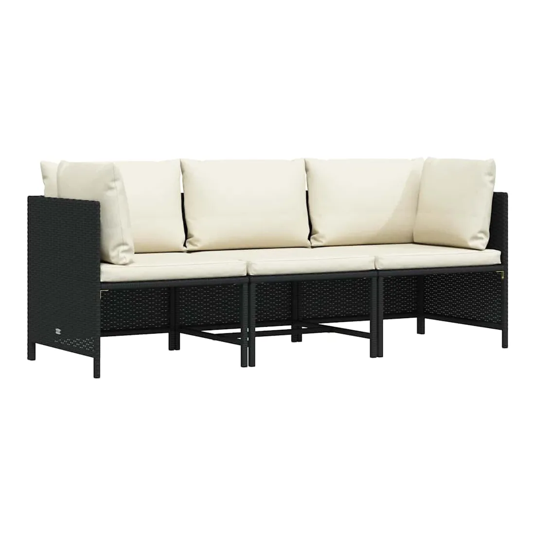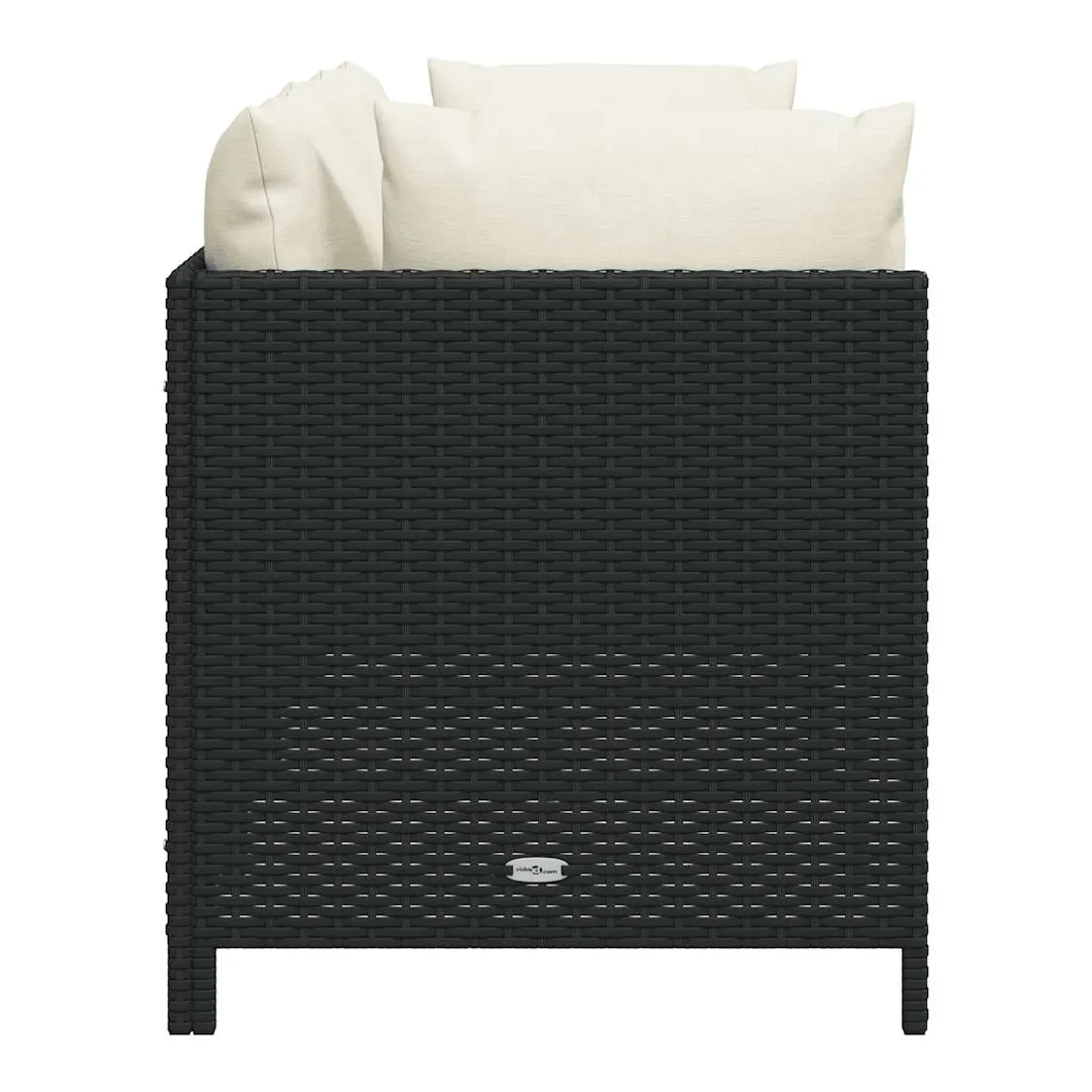 Canapé de jardin à 3 places avec coussins Noir Résine tressée