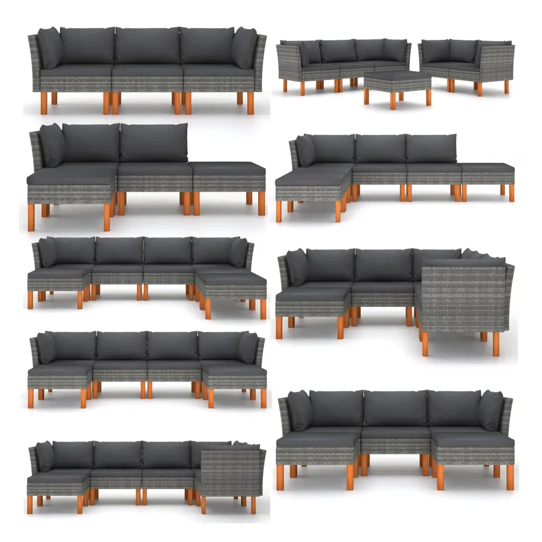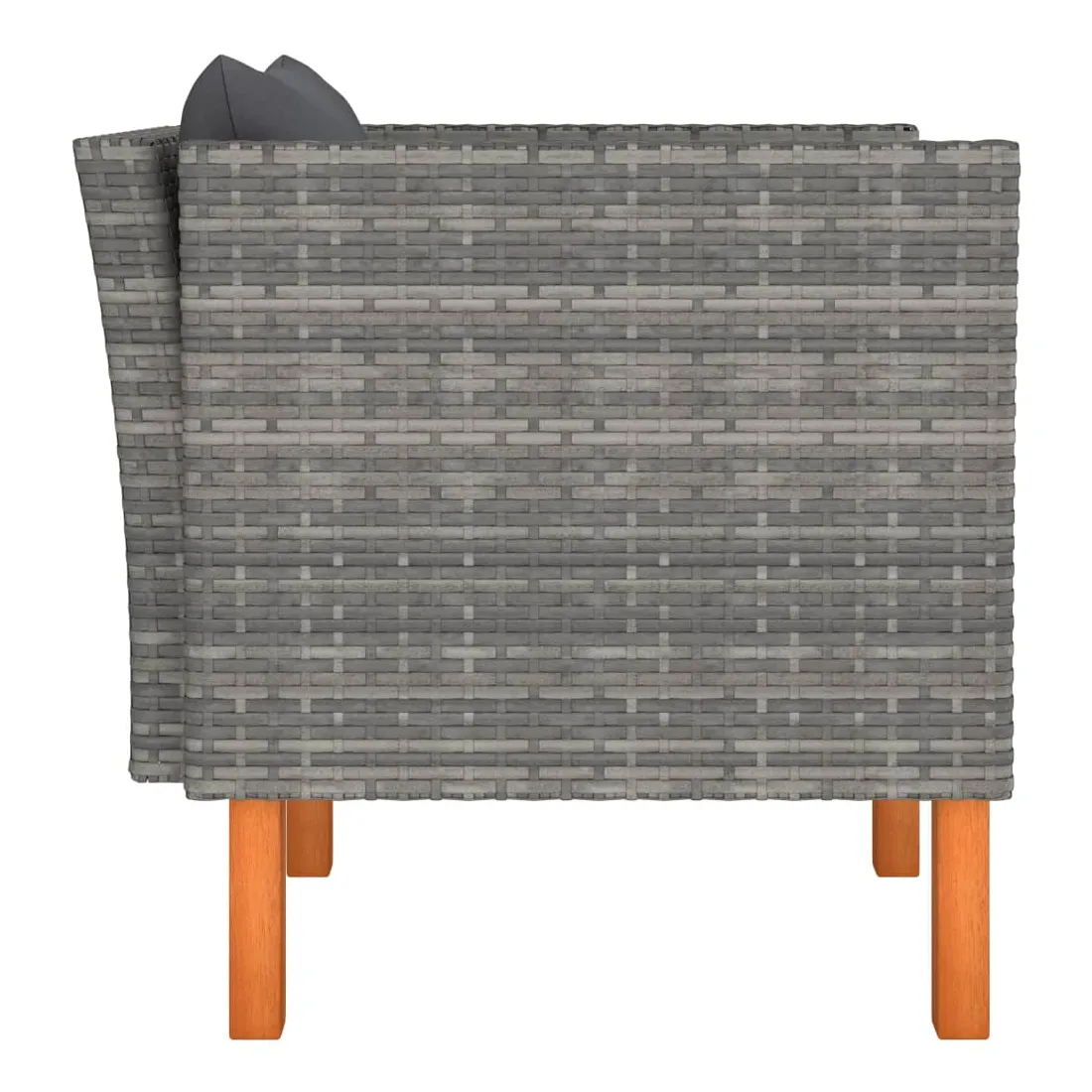 Ce canapé de jardin est un choix idéal pour vous détendre et profiter du beau temps, faire une sieste ou discuter avec votre famille ou vos amis. Doté d’un cadre en acier enduit de poudre recouvert de résine tressée, ce canapé est robuste et facile à nettoyer. Les pieds en bois d’eucalyptus massif contribuent à sa robustesse et à sa stabilité. De plus, les coussins ajoutent un confort supplémentaire à votre temps de détente. Équipé de fermetures éclair, les housses de coussin sont amovible et lavable. Grâce à la construction légère en résine tressée, vous pouvez le déplacer facilement. Vous pouvez le combiner avec d’autres segments modulaires disponibles dans le menu déroulant pour créer vos propres configurations de salon de jardin ! Remarque importante : Nous vous recommandons de couvrir le fauteuil de jardin pendant la pluie, la neige et le gel pour une utilisation durable.