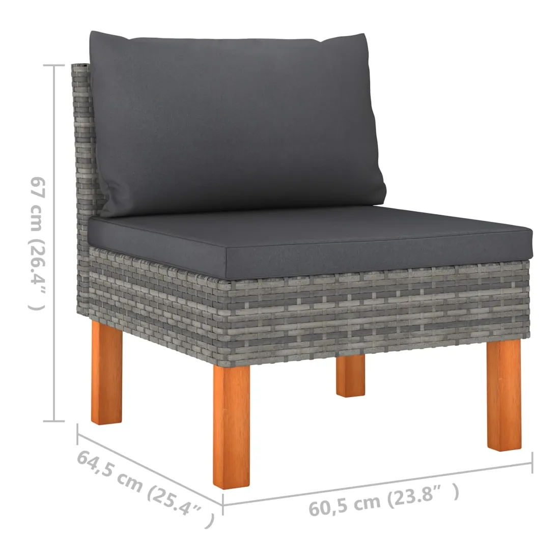 Ces canapés centraux sont des choix idéaux pour vous détendre et profiter du beau temps, faire une sieste ou discuter avec votre famille ou vos amis. Doté d’un cadre en acier enduit de poudre recouvert de résine tressée, le siège central est robuste et facile à nettoyer. Les pieds en bois d’eucalyptus massif contribuent à sa robustesse et à sa stabilité. De plus, les coussins ajoutent du confort supplémentaire à votre temps de détente. Équipées de fermetures éclair, les housses de coussin sont amovibles et lavables. Ils sont également légers et modulaires, ce qui les rend complètement flexibles et faciles à déplacer pour convenir à toute configuration. Remarque importante : Nous vous recommandons de couvrir le canapé de jardin pendant la pluie, la neige et le gel pour une utilisation durable.