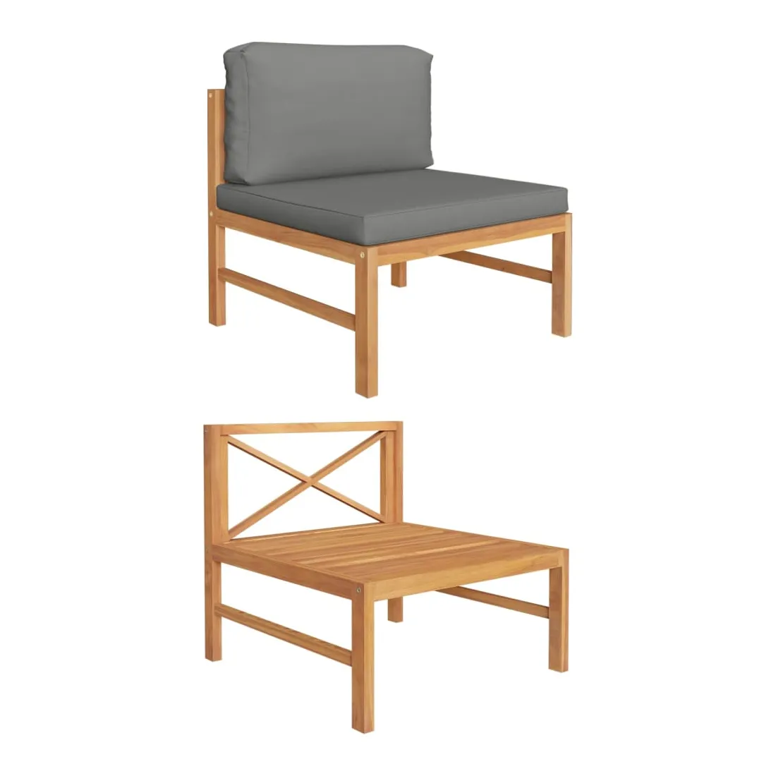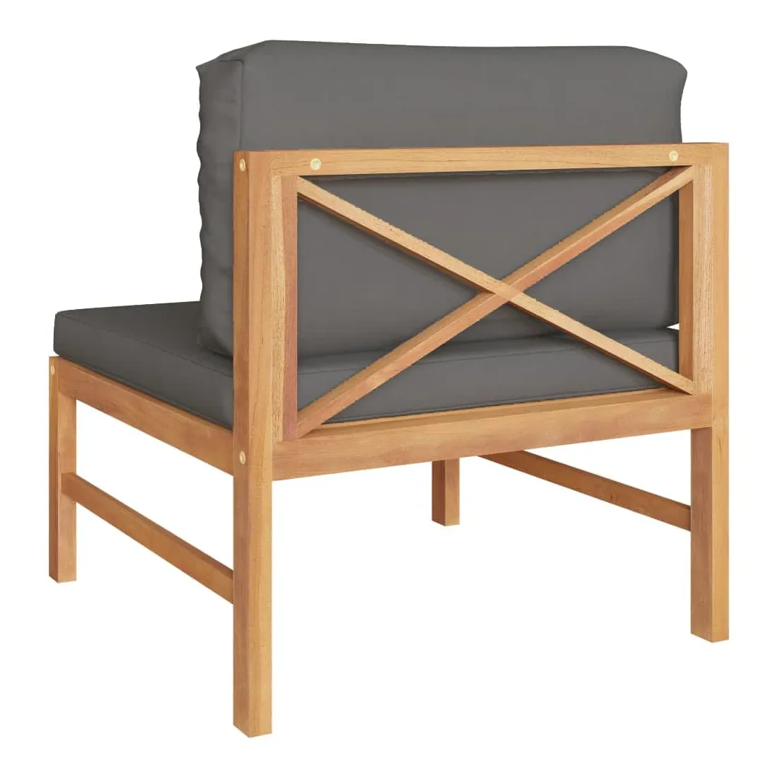 Ce canapé central en bois, se démarquant par son design et ses coussins moelleux, est un excellent supplément à votre jardin, terrasse ou patio pour discuter avec votre famille et vos amis ou simplement profiter du beau temps. Construit à partir de bois dur de teck extrêmement durable, ce meuble en teck a été assaisonné, séché au four puis poncé finement pour lui donner un aspect très lisse. Le bois de teck est connu pour sa résistance exceptionnelle aux intempéries, ce qui le rend beaucoup plus adapté aux meubles de jardin que tout autre type de bois. Le bois de teck est le choix parfait si vous souhaitez acheter un meuble de jardin durable. Les coussins de siège et de dossier sont bien rembourrés et offrent un confort optimal. La surface poncée est facile à nettoyer avec un chiffon humide. Le canapé de jardin est flexible et facile à déplacer, ce qui vous permet de créer facilement différentes configurations pour répondre à vos besoins.