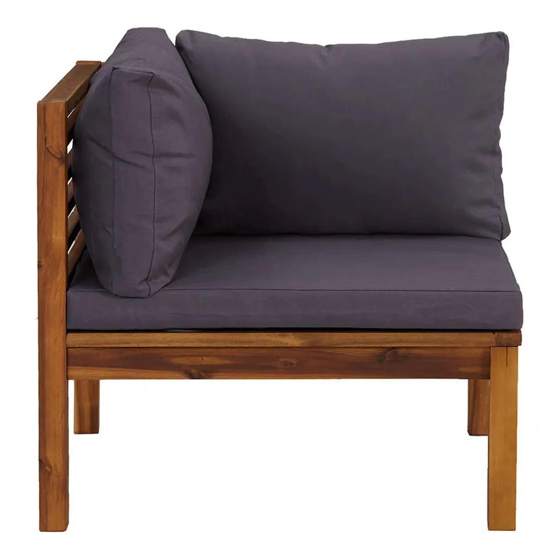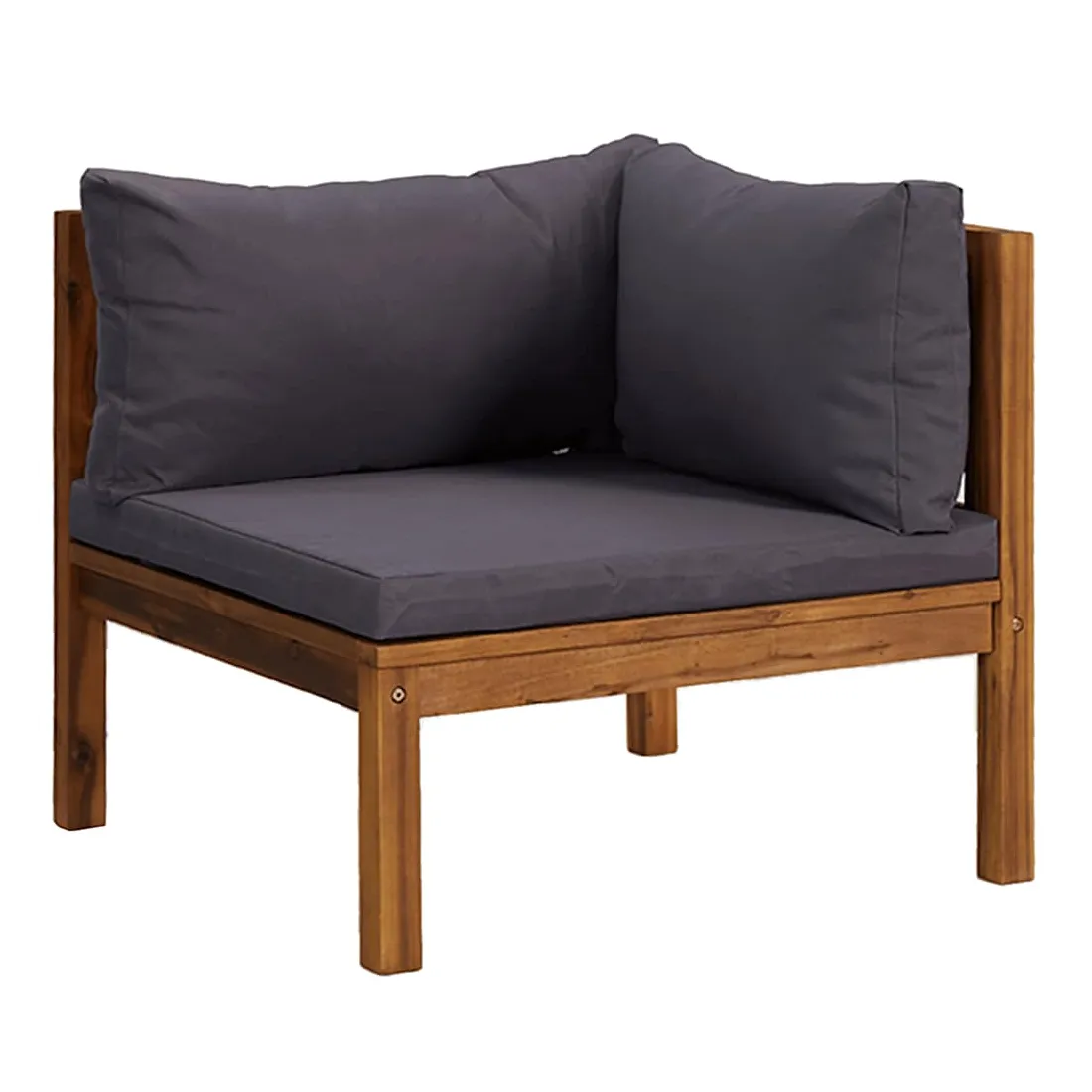 Ce canapé d'angle sectionnel en bois allie style et fonctionnalité et est conçu pour être utilisé à l’extérieur toute l’année. Fabriqué en bois d'acacia massif, le siège d'angle est solide, robuste et durable. Sa finition à l'huile rend le canapé adapté à une utilisation dehors. Les coussins d'assise et de dossier rembourrés offrent le confort suprême pendant votre expérience d'assise. Vous pouvez le combiner avec d'autres segments modulaires disponibles pour créer vos propres configurations de salon de jardin ! Remarque : Afin de prolonger la durée de vie de vos meubles d'extérieur, nous vous recommandons de les nettoyer régulièrement et de ne pas les laisser à l'extérieur sans protection inutilement.Nettoyage : Utiliser une solution savonneuse douce.Stockage : Si possible, stockez dans un endroit frais et sec à l'intérieur. Si le produit est stocké à l'extérieur, protégez-le avec une housse imperméable. Essuyez et séchez l'excès d'eau ou de neige des surfaces planes après la pluie ou une chute de neige. Permettez une circulation d'air suffisante afin d'éviter les dommages liés à l'humidité.