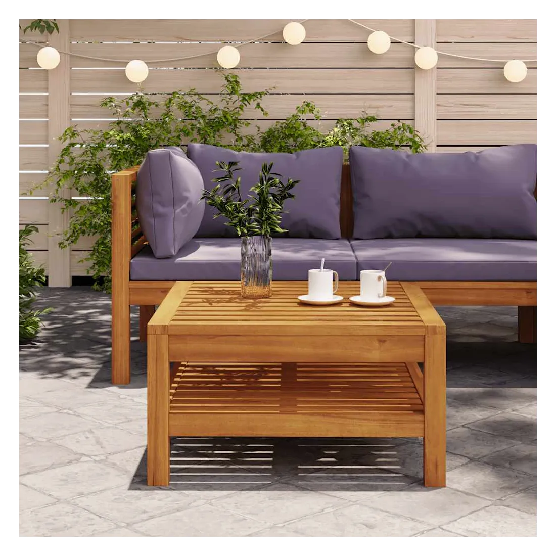 Vous cherchez quelque chose de plus raffiné et de plus convaincant dans votre espace extérieur ? Cette table basse en bois est un choix optimal pour vous. Cette table est faite de bois d'acacia massif pour une durabilité maximale, qui convient au patio, au jardin, à la terrasse, au bord de la piscine ou à tout espace extérieur. Le bois d'acacia est un bois dur tropical, résistant aux intempéries et durable. L'artisanat et les beaux grains de bois rendent chaque meuble unique et légèrement différent l'un de l'autre. De plus, le dessus de table robuste avec un design à lattes vous offre de l'espace pour mettre des collations, des paniers de fruits, des objets décoratifs, ainsi que divers autres articles essentiels. Remarque : afin de prolonger la durée de vie des meubles d'extérieur, nous vous recommandons de les protéger avec une housse imperméable.