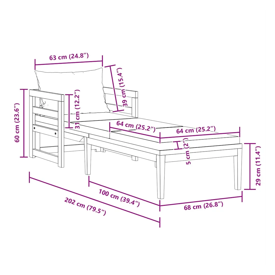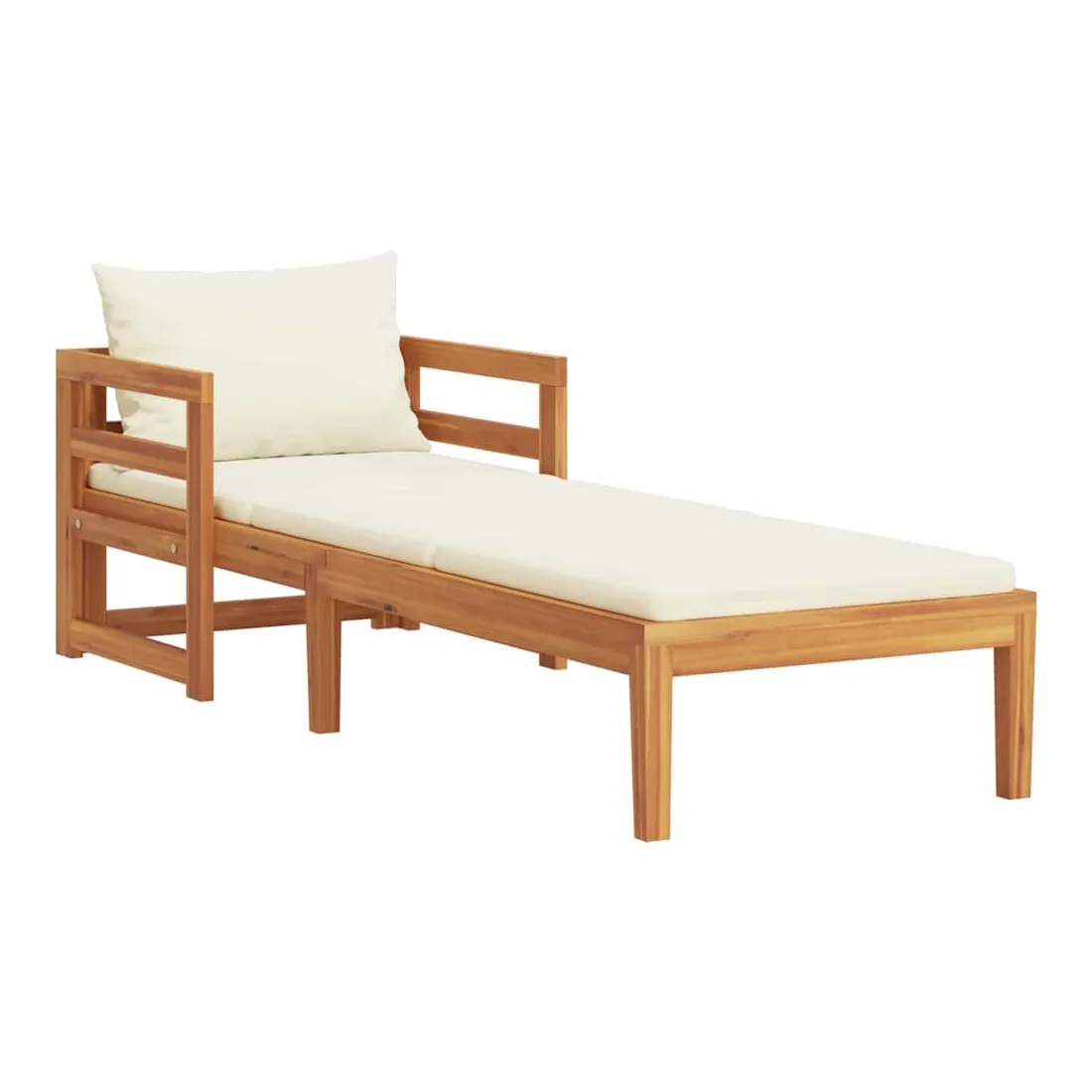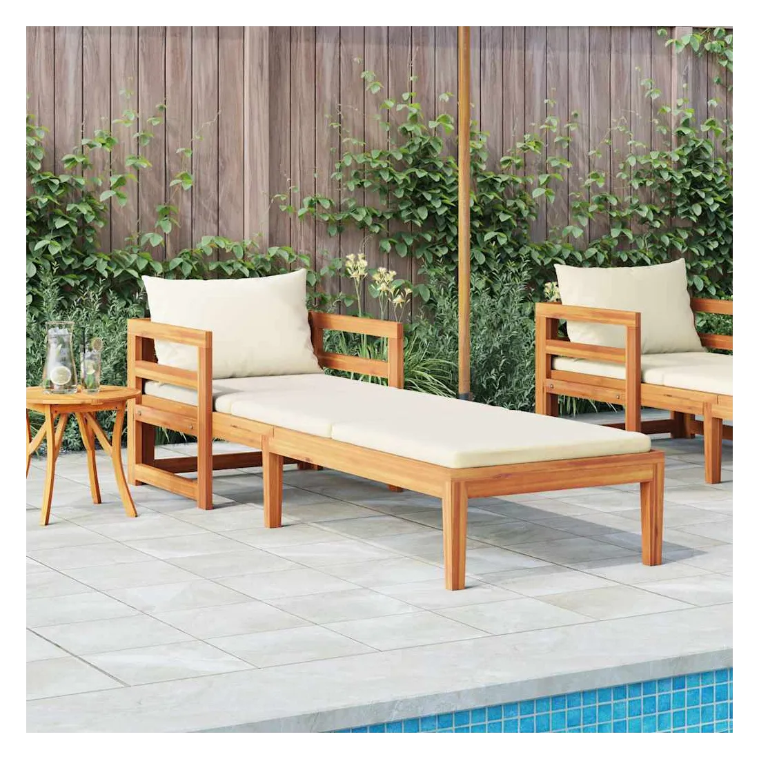 Profitez d’un moment de détente agréable avec vos amis ou votre famille dans l’espace d'extérieur sur cette chaise longue en bois ! Ce transat de jardin est fabriqué en bois d'acacia massif, un bois dur aux grains denses. Ce transat d'extérieur au design magnifique est stable, durable et accrocheur. De plus, le savoir-faire exquis et les beaux grains de bois rendent chaque pièce légèrement différente l'une de l'autre. En outre, les coussins inclus ajoutent plus de confort tout en vous reposant. Remarque : afin de prolonger la durée de vie de vos meubles d'extérieur, nous vous recommandons de les nettoyer régulièrement et de ne pas les laisser à l'extérieur sans protection inutilement.Nettoyage : Utiliser une solution savonneuse douce.Stockage : si possible, stockez dans un endroit frais et sec à l'intérieur. Si le produit est stocké à l'extérieur, protégez-le avec une housse imperméable. Essuyez et séchez l'excès d'eau ou de neige des surfaces planes après la pluie ou une chute de neige. Permettez une circulation d'air suffisante afin d'éviter les dommages liés à l'humidité.