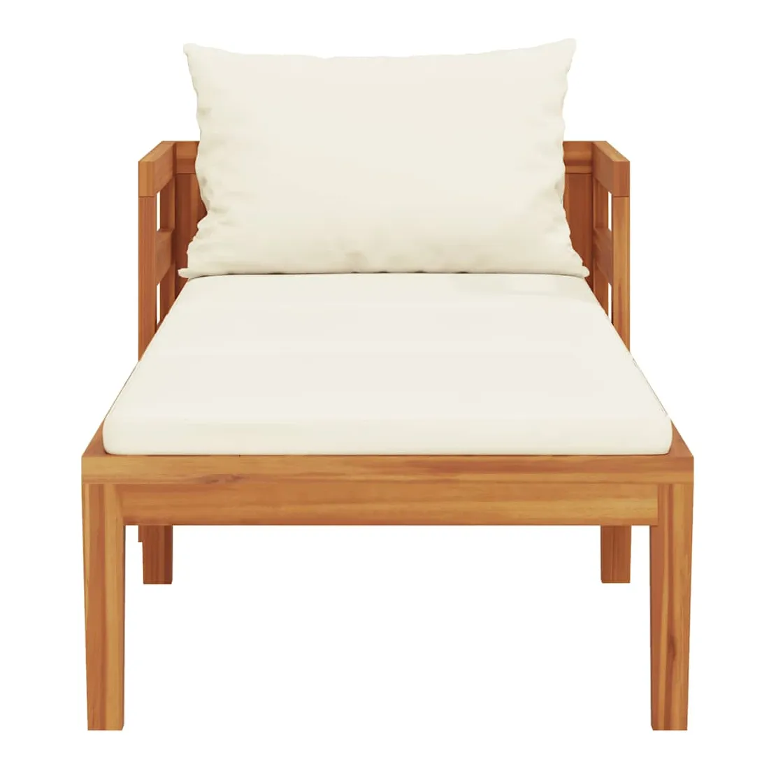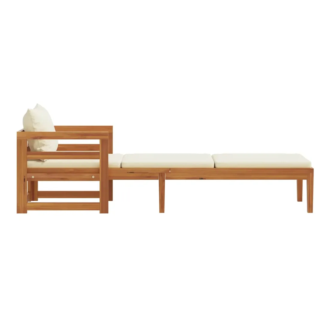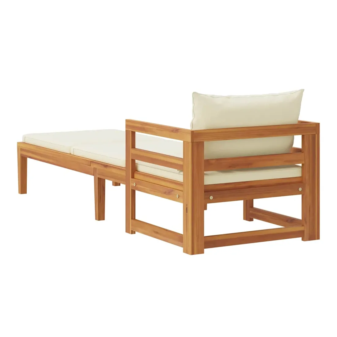 Profitez d’un moment de détente agréable avec vos amis ou votre famille dans l’espace d'extérieur sur cette chaise longue en bois ! Ce transat de jardin est fabriqué en bois d'acacia massif, un bois dur aux grains denses. Ce transat d'extérieur au design magnifique est stable, durable et accrocheur. De plus, le savoir-faire exquis et les beaux grains de bois rendent chaque pièce légèrement différente l'une de l'autre. En outre, les coussins inclus ajoutent plus de confort tout en vous reposant. Remarque : afin de prolonger la durée de vie de vos meubles d'extérieur, nous vous recommandons de les nettoyer régulièrement et de ne pas les laisser à l'extérieur sans protection inutilement.Nettoyage : Utiliser une solution savonneuse douce.Stockage : si possible, stockez dans un endroit frais et sec à l'intérieur. Si le produit est stocké à l'extérieur, protégez-le avec une housse imperméable. Essuyez et séchez l'excès d'eau ou de neige des surfaces planes après la pluie ou une chute de neige. Permettez une circulation d'air suffisante afin d'éviter les dommages liés à l'humidité.