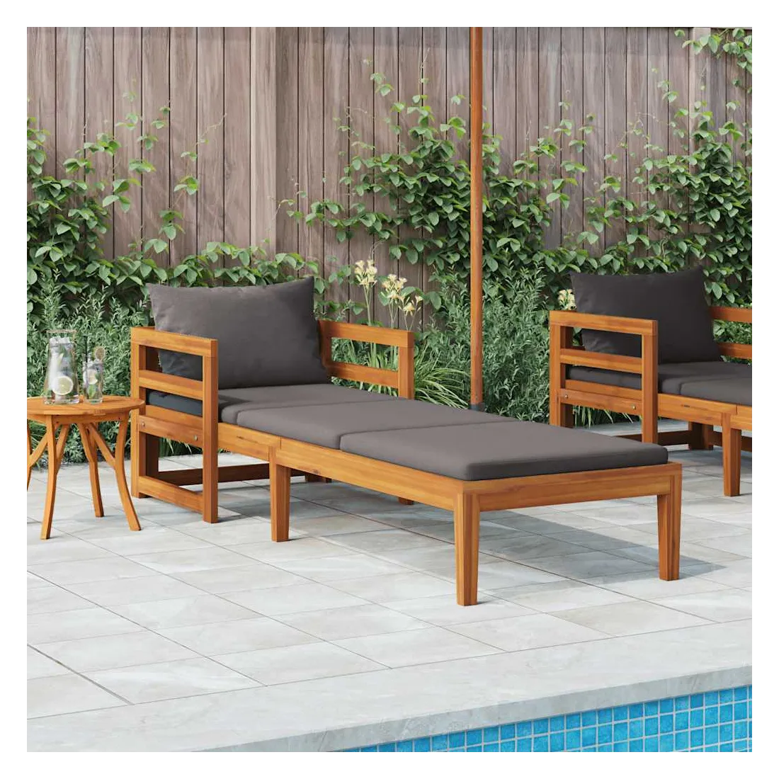 Profitez d’un moment de détente agréable avec vos amis ou votre famille dans l’espace d'extérieur sur cette chaise longue en bois ! Ce transat de jardin est fabriqué en bois d'acacia massif, un bois dur aux grains denses. Ce transat d'extérieur au design magnifique est stable, durable et accrocheur. De plus, le savoir-faire exquis et les beaux grains de bois rendent chaque pièce légèrement différente l'une de l'autre. En outre, les coussins inclus ajoutent plus de confort tout en vous reposant. Remarque : afin de prolonger la durée de vie de vos meubles d'extérieur, nous vous recommandons de les nettoyer régulièrement et de ne pas les laisser à l'extérieur sans protection inutilement.Nettoyage : Utiliser une solution savonneuse douce.Stockage : si possible, stockez dans un endroit frais et sec à l'intérieur. Si le produit est stocké à l'extérieur, protégez-le avec une housse imperméable. Essuyez et séchez l'excès d'eau ou de neige des surfaces planes après la pluie ou une chute de neige. Permettez une circulation d'air suffisante afin d'éviter les dommages liés à l'humidité.