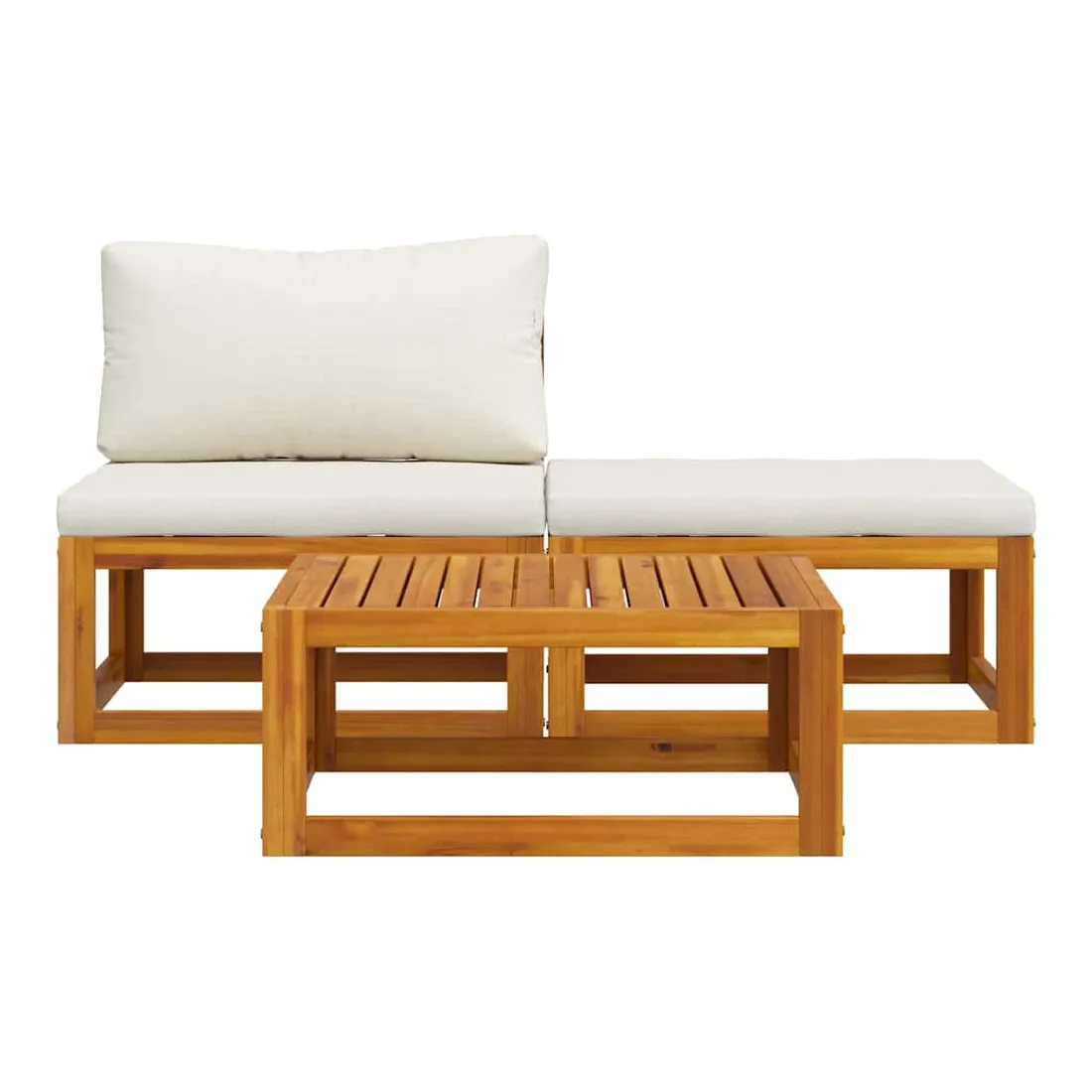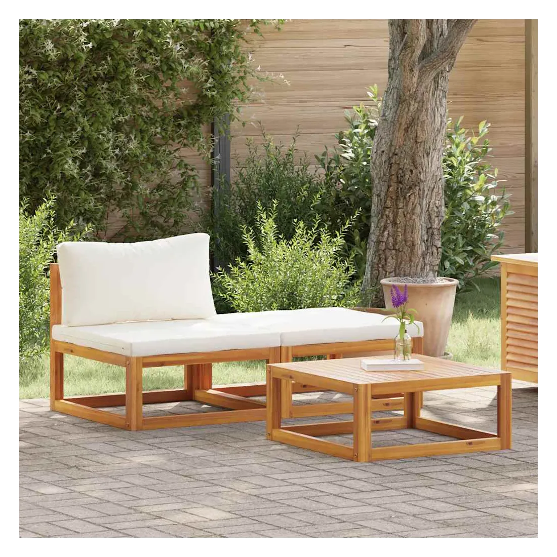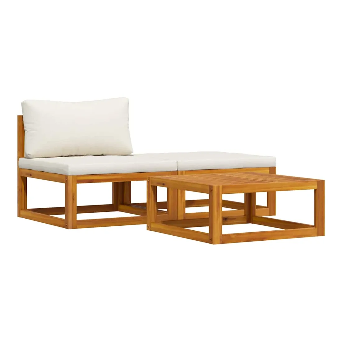 Salon de jardin 3 pcs avec coussins crème Bois d'acacia solide