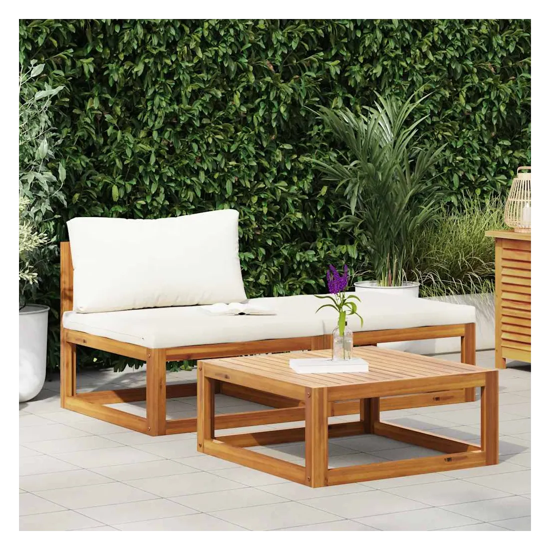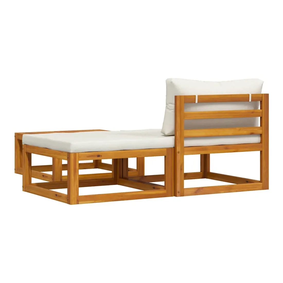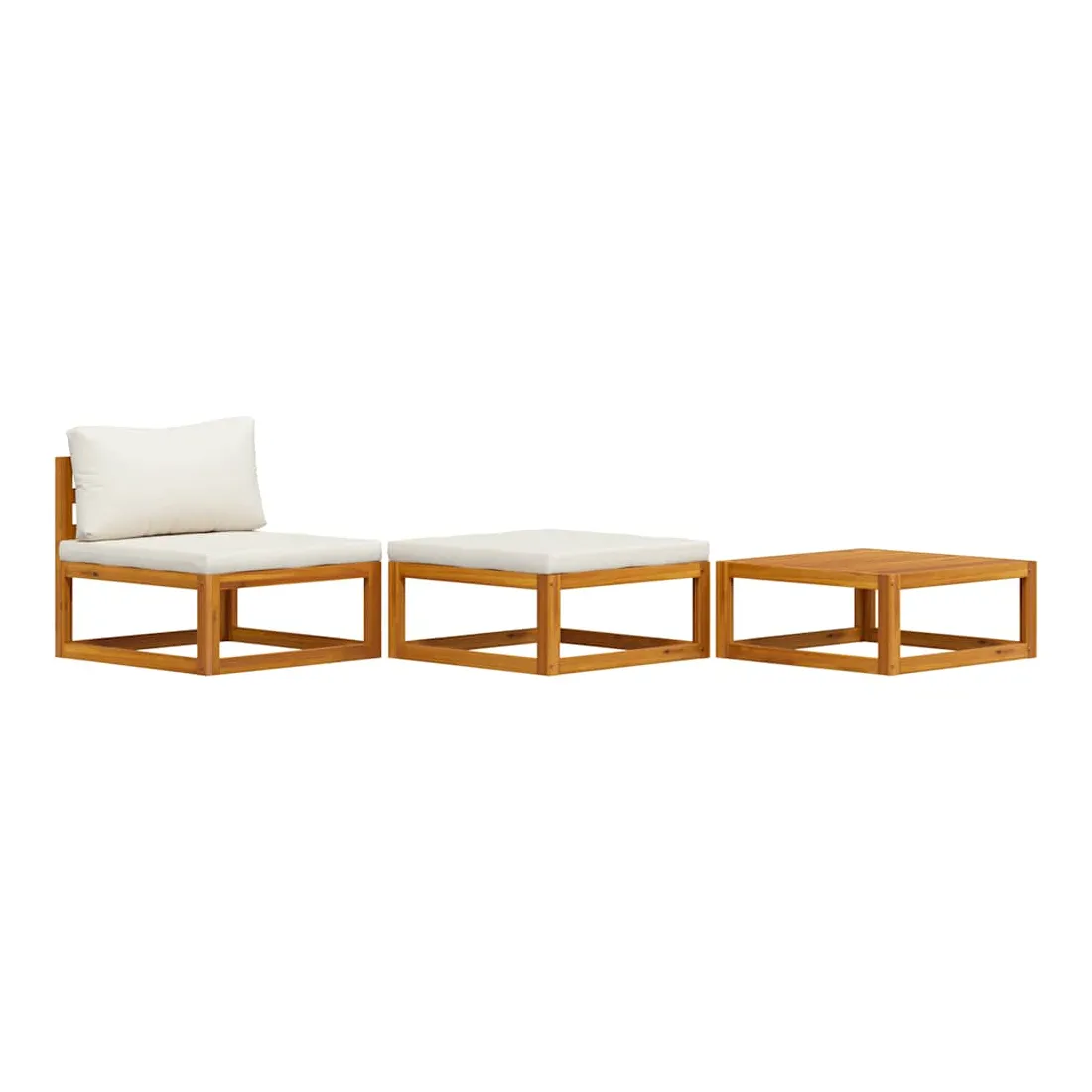 Salon de jardin 3 pcs avec coussins crème Bois d'acacia solide