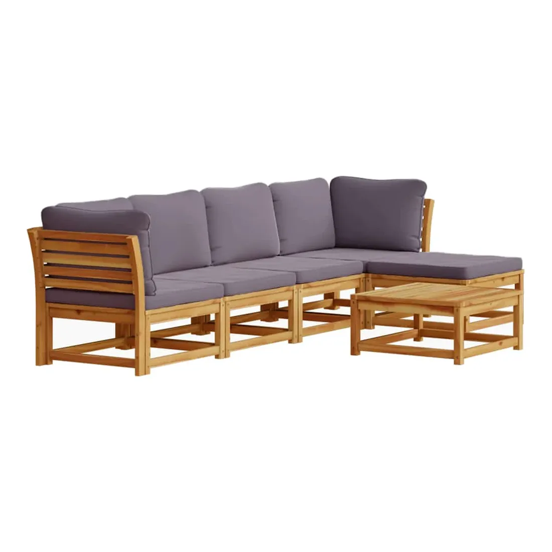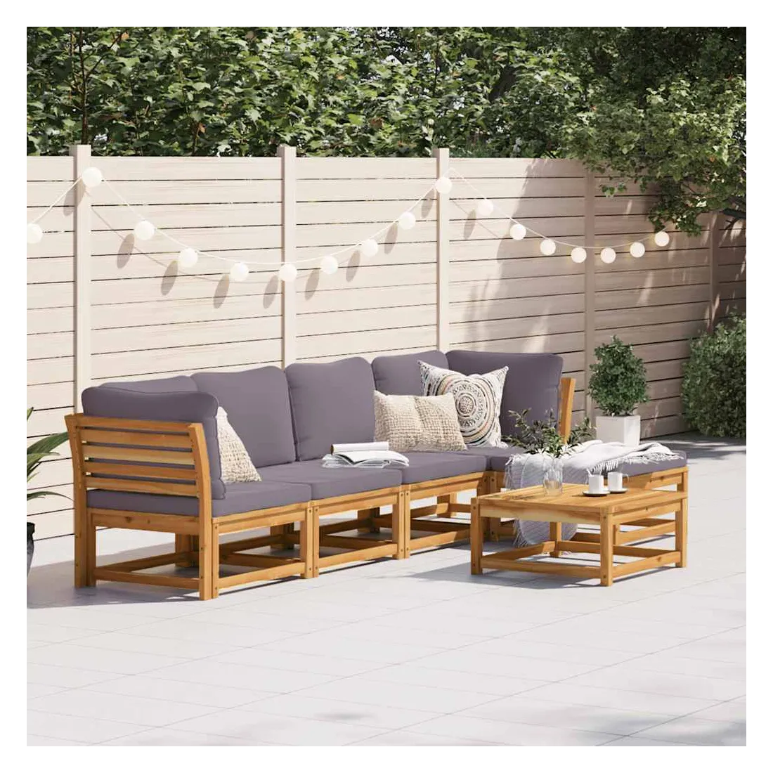 Cet ensemble de salon de jardin en bois avec coussins a un design élégant et constitue un excellent choix pour vous détendre et profiter du jardin ou du patio. Bois d'acacia massif : le bois d'acacia massif est un matériau naturel magnifique. Le bois d'acacia un bois dur tropical, qui est dense, robuste et durable.Expérience d'assise confortable : le dossier et les coussins rembourrés rendent l’ensemble de canapé de jardin plus confortable pour s'asseoir.Conception à lattes : la conception à lattes de l’ensemble de meubles en bois empêche efficacement l'eau de s'accumuler, ce qui garantit que l'assise reste sèche et exempte de tout risque de pourriture.Conception modulaire : cet ensemble de meubles d'extérieur a une conception modulaire, ce qui le rend complètement flexible et facile à déplacer, afin que vous puissiez créer un agencement de meubles d'extérieur personnalisé. Bon à savoir :Pour que vos meubles d'extérieur restent beaux, nous vous recommandons de les protéger avec une housse imperméable.