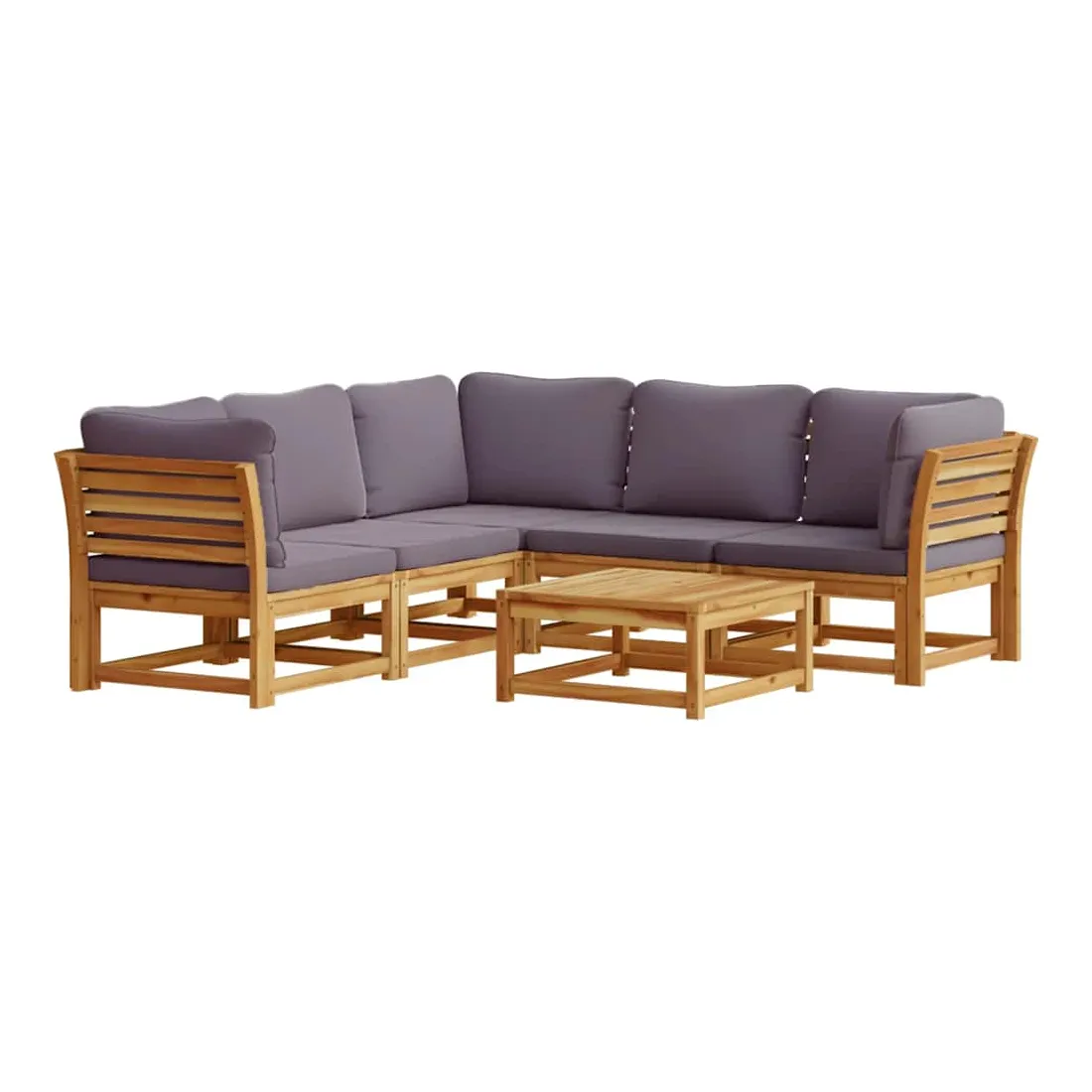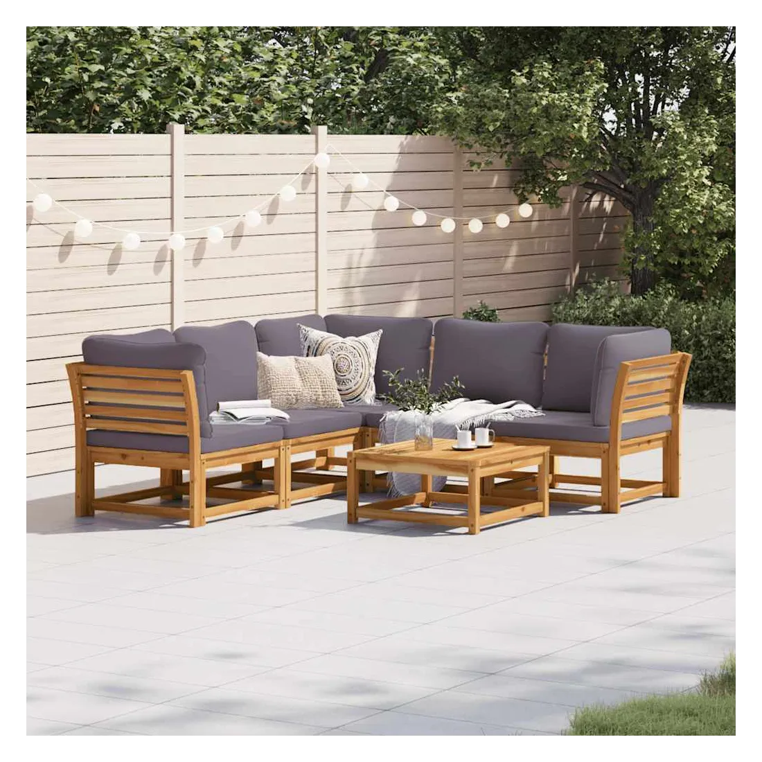 Cet ensemble de salon de jardin en bois avec coussins a un design élégant et constitue un excellent choix pour vous détendre et profiter du jardin ou du patio. Bois d'acacia massif : le bois d'acacia massif est un matériau naturel magnifique. Le bois d'acacia un bois dur tropical, qui est dense, robuste et durable.Expérience d'assise confortable : le dossier et les coussins rembourrés rendent l’ensemble de canapé de jardin plus confortable pour s'asseoir.Conception à lattes : la conception à lattes de l’ensemble de meubles en bois empêche efficacement l'eau de s'accumuler, ce qui garantit que l'assise reste sèche et exempte de tout risque de pourriture.Conception modulaire : cet ensemble de meubles d'extérieur a une conception modulaire, ce qui le rend complètement flexible et facile à déplacer, afin que vous puissiez créer un agencement de meubles d'extérieur personnalisé. Bon à savoir :Pour que vos meubles d'extérieur restent beaux, nous vous recommandons de les protéger avec une housse imperméable.