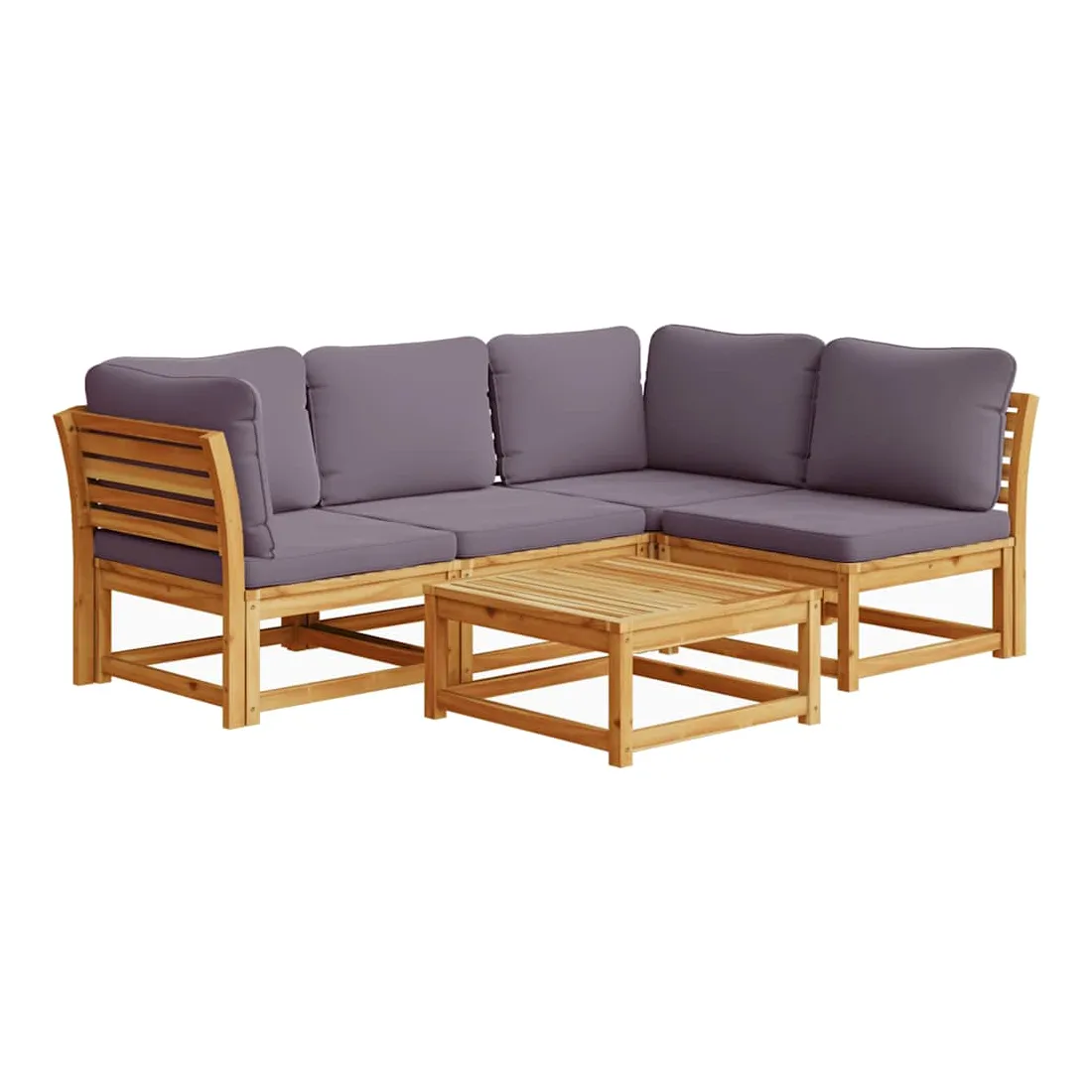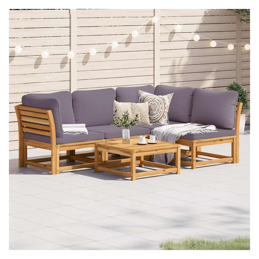 Cet ensemble de salon de jardin en bois avec coussins a un design élégant et constitue un excellent choix pour vous détendre et profiter du jardin ou du patio. Bois d'acacia massif : le bois d'acacia massif est un matériau naturel magnifique. Le bois d'acacia un bois dur tropical, qui est dense, robuste et durable.Expérience d'assise confortable : le dossier et les coussins rembourrés rendent l’ensemble de canapé de jardin plus confortable pour s'asseoir.Conception à lattes : la conception à lattes de l’ensemble de meubles en bois empêche efficacement l'eau de s'accumuler, ce qui garantit que l'assise reste sèche et exempte de tout risque de pourriture.Conception modulaire : cet ensemble de meubles d'extérieur a une conception modulaire, ce qui le rend complètement flexible et facile à déplacer, afin que vous puissiez créer un agencement de meubles d'extérieur personnalisé. Bon à savoir :Pour que vos meubles d'extérieur restent beaux, nous vous recommandons de les protéger avec une housse imperméable.