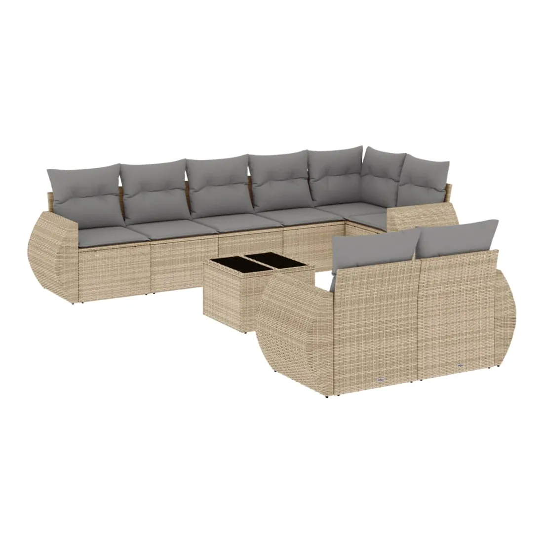 Salon de jardin avec coussins 9 pcs beige résine tressée