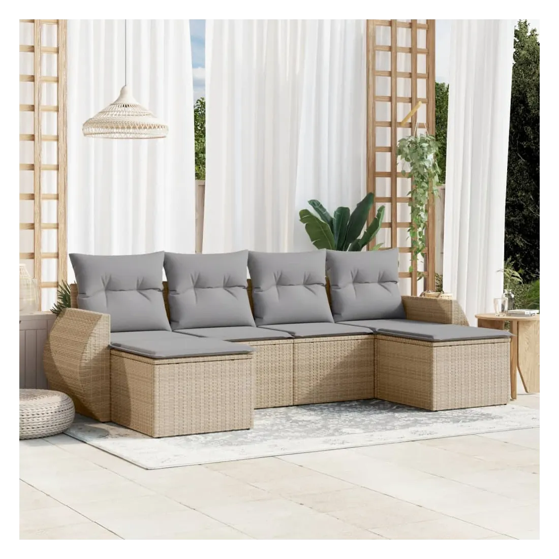 Cet ensemble de canapés de jardin est le complément parfait de votre arrière-cour, terrasse ou patio, offrant un espace confortable et accueillant pour discuter avec la famille et les amis ou simplement se détendre et profiter de l'extérieur. Matériau durable : la résine tressée, également connue sous le nom de poly rotin, est un matériau synthétique solide et nécessitant peu d'entretien qui ressemble au rotin naturel. Il est léger, facile à nettoyer et couramment utilisé pour les meubles d'extérieur en raison de sa durabilité et de ses propriétés de résistance aux intempéries.Expérience d'assise confortable : ce mobilier d'extérieur, doté de coussins épais, offre une expérience d'assise confortable.Housse amovible et lavable : ces coussins de siège sont dotés de housses amovibles pour un lavage et un entretien faciles.Conception modulaire : cet ensemble de meubles d'extérieur a une conception modulaire, ce qui le rend complètement flexible et facile à déplacer, afin que vous puissiez créer un agencement de meubles d'extérieur personnalisé. Bon à savoir :Pour que vos meubles d'extérieur restent beaux, nous vous recommandons de les protéger avec une housse imperméable.