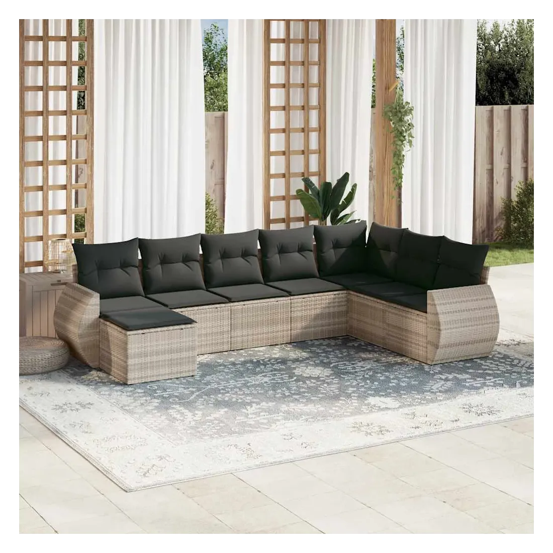 Cet ensemble de canapés de jardin est le complément parfait de votre arrière-cour, terrasse ou patio, offrant un espace confortable et accueillant pour discuter avec la famille et les amis ou simplement se détendre et profiter de l'extérieur. Matériau durable : la résine tressée, également connue sous le nom de poly rotin, est un matériau synthétique solide et nécessitant peu d'entretien qui ressemble au rotin naturel. Il est léger, facile à nettoyer et couramment utilisé pour les meubles d'extérieur en raison de sa durabilité et de ses propriétés de résistance aux intempéries.Expérience d'assise confortable : ce mobilier d'extérieur, doté de coussins épais, offre une expérience d'assise confortable.Housse amovible et lavable : ces coussins de siège sont dotés de housses amovibles pour un lavage et un entretien faciles.Conception modulaire : cet ensemble de meubles d'extérieur a une conception modulaire, ce qui le rend complètement flexible et facile à déplacer, afin que vous puissiez créer un agencement de meubles d'extérieur personnalisé. Bon à savoir :Pour que vos meubles d'extérieur restent beaux, nous vous recommandons de les protéger avec une housse imperméable.