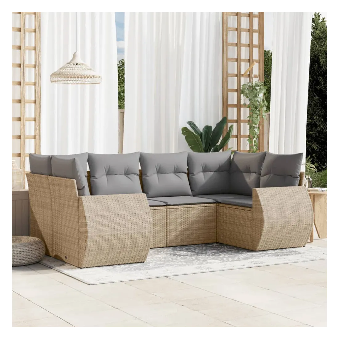 Cet ensemble de canapés de jardin est le complément parfait de votre arrière-cour, terrasse ou patio, offrant un espace confortable et accueillant pour discuter avec la famille et les amis ou simplement se détendre et profiter de l'extérieur. Matériau durable : la résine tressée, également connue sous le nom de poly rotin, est un matériau synthétique solide et nécessitant peu d'entretien qui ressemble au rotin naturel. Il est léger, facile à nettoyer et couramment utilisé pour les meubles d'extérieur en raison de sa durabilité et de ses propriétés de résistance aux intempéries.Expérience d'assise confortable : ce mobilier d'extérieur, doté de coussins épais, offre une expérience d'assise confortable.Housse amovible et lavable : ces coussins de siège sont dotés de housses amovibles pour un lavage et un entretien faciles.Conception modulaire : cet ensemble de meubles d'extérieur a une conception modulaire, ce qui le rend complètement flexible et facile à déplacer, afin que vous puissiez créer un agencement de meubles d'extérieur personnalisé. Bon à savoir :Pour que vos meubles d'extérieur restent beaux, nous vous recommandons de les protéger avec une housse imperméable.