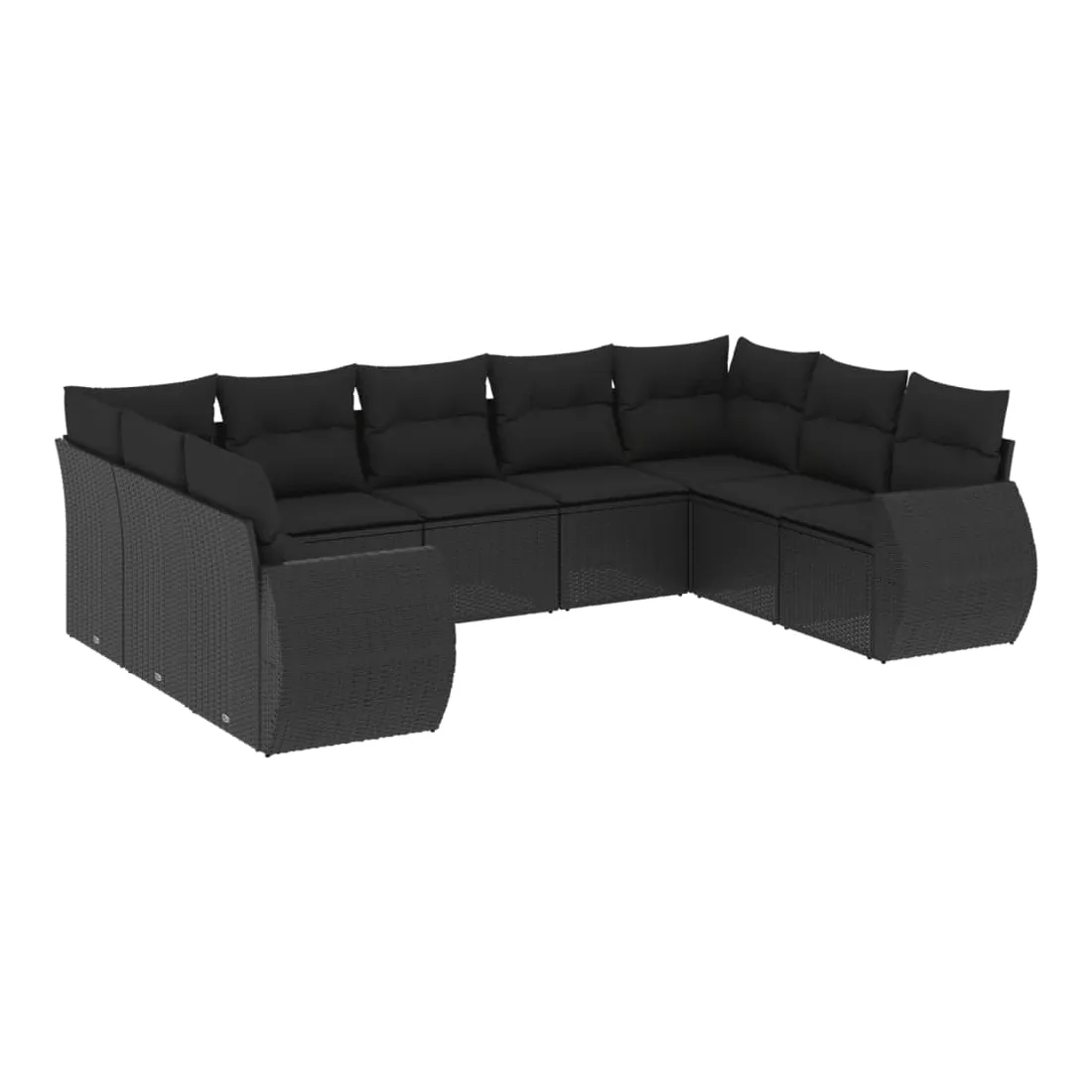 Salon de jardin 9 pcs avec coussins noir résine tressée