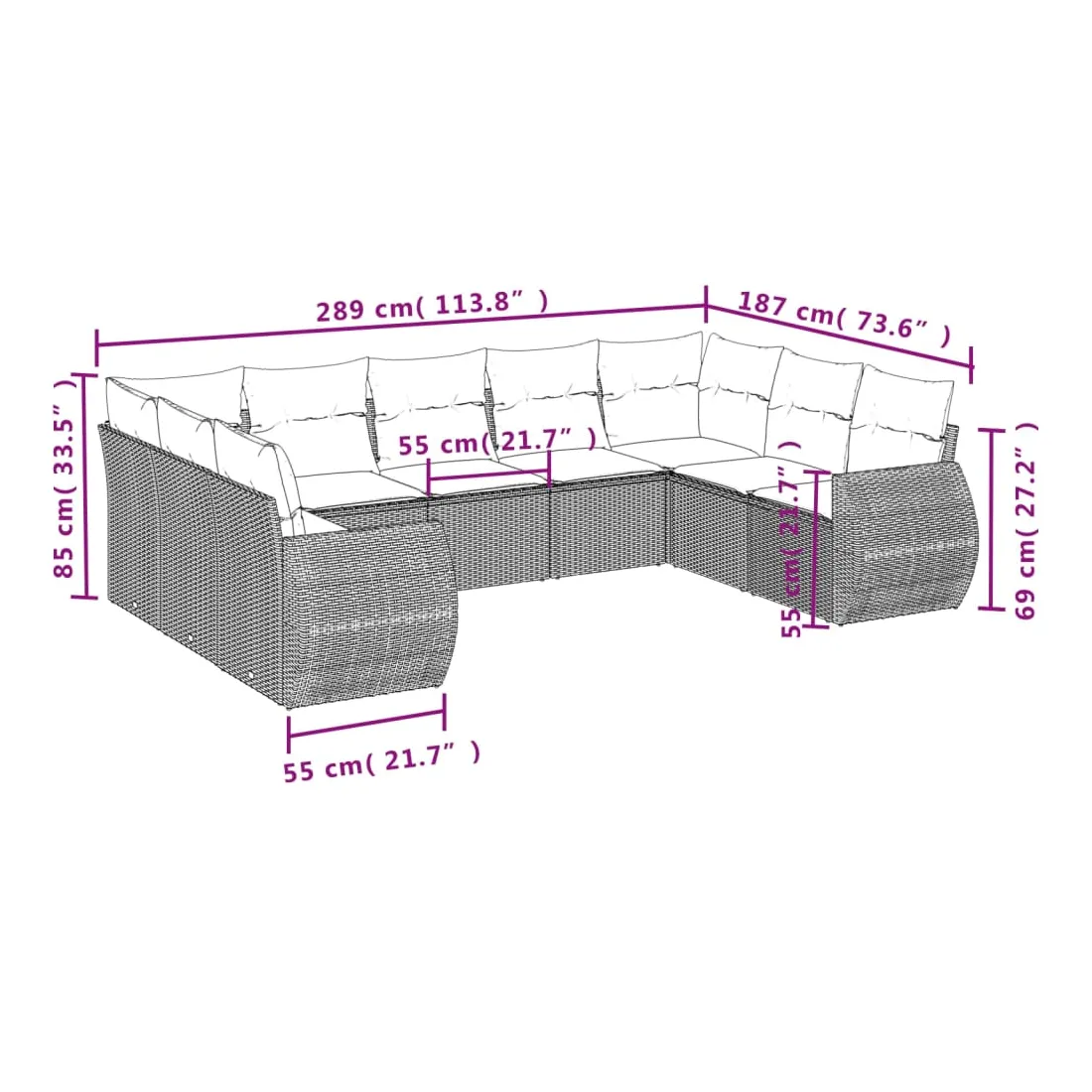 • 9 x coussin d'assise avec housse amovible et lavable
