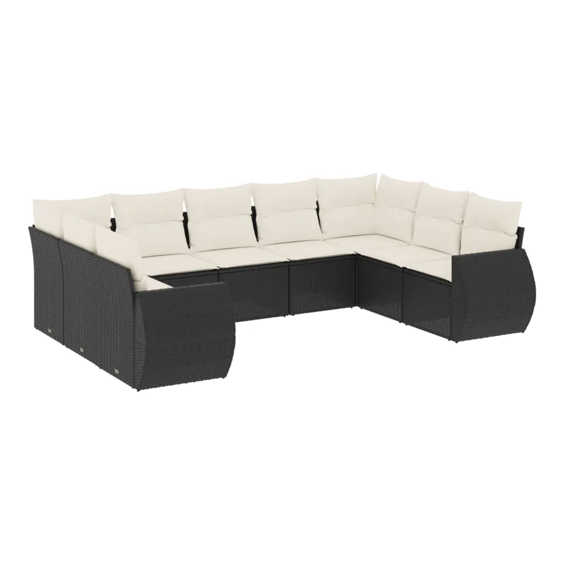 Salon de jardin 9 pcs avec coussins noir résine tressée